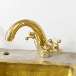 Add traditional flair to your bathroom with the Engraved Gooseneck Single-Hole Faucet. the flat cross handles to control the pressure and temperature, making it easy to use. Choose your favorite finish to match existing decor