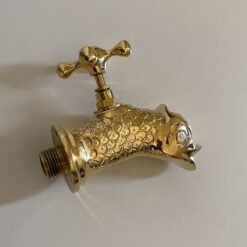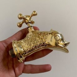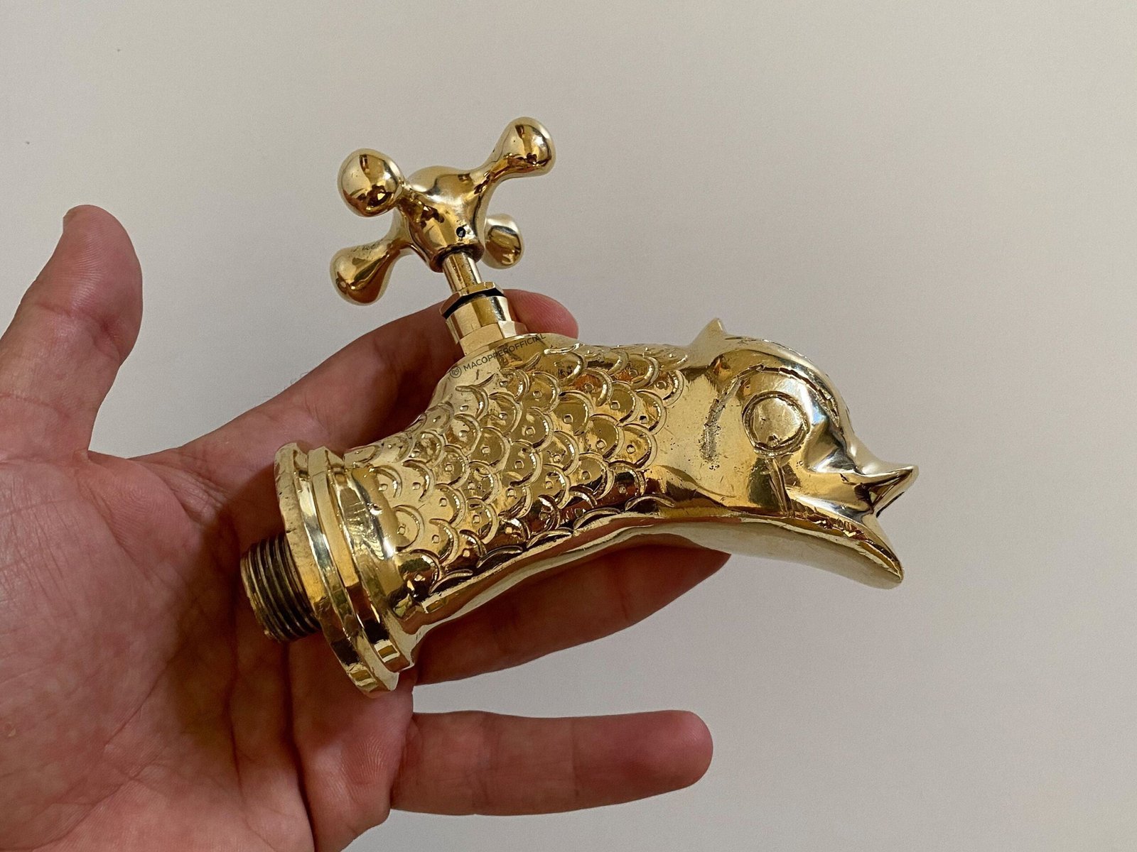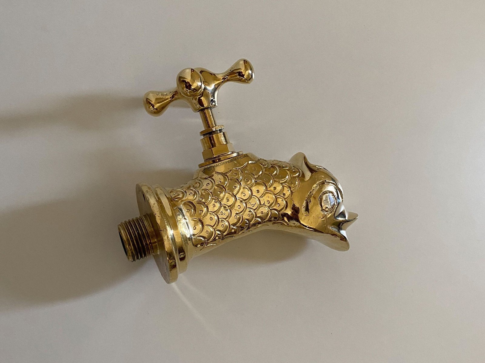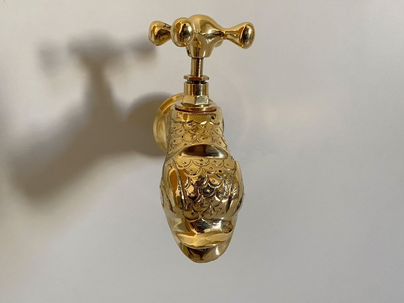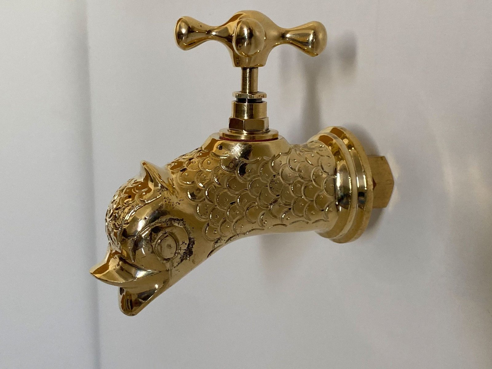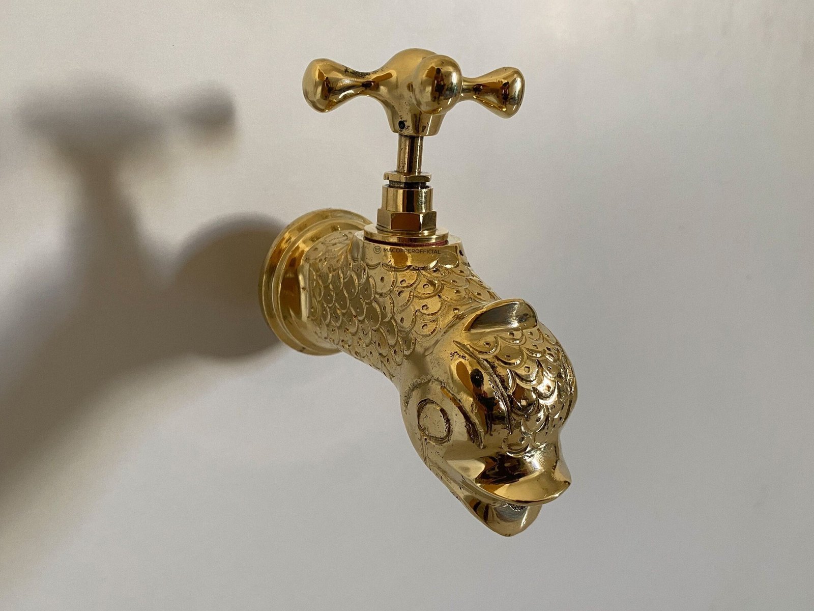 Handcrafted Wall Faucet For Garden, Bathroom Wall tap, Outdoor sink Faucet, Unlacquered Brass Fish Shaped Faucet, Wall Mounted Faucet