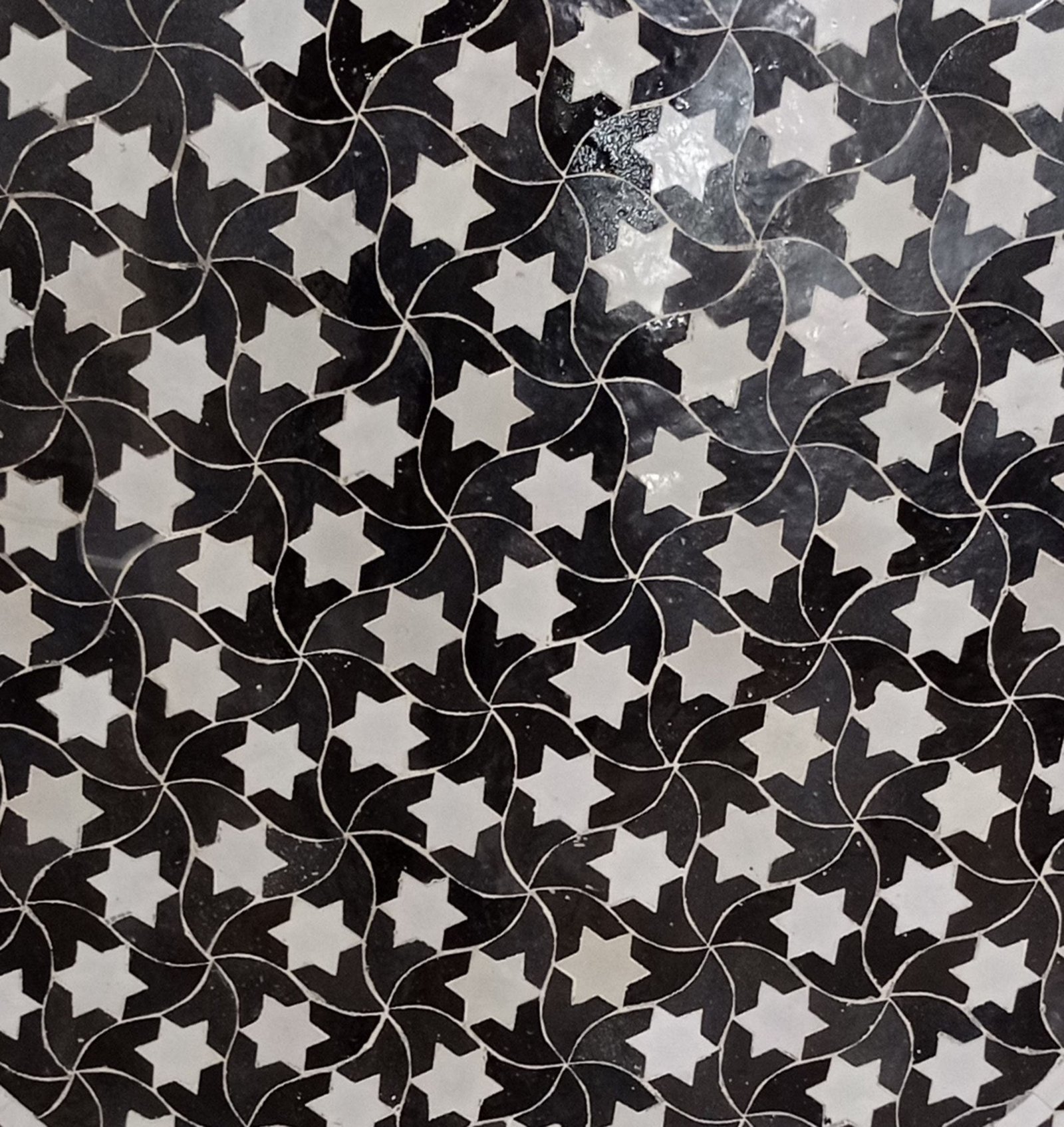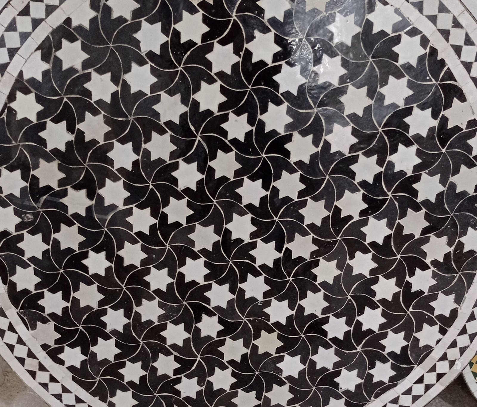 Handmade Moroccan Black and white Outdoor Dining Table with Mosaic