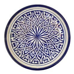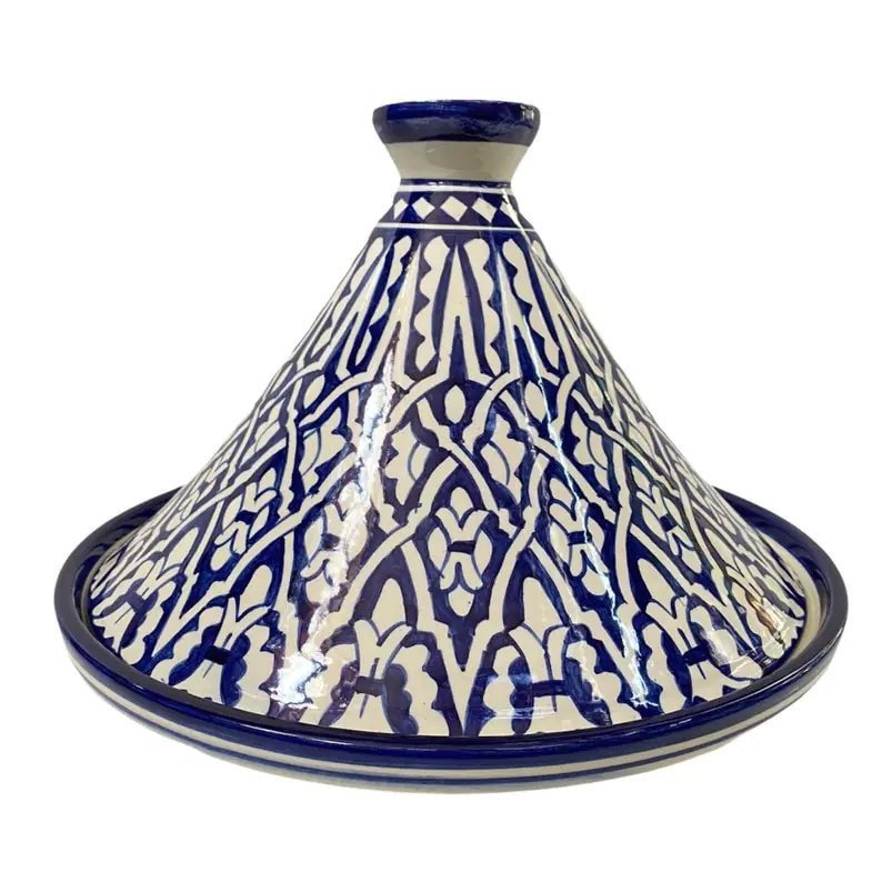 Fes ceramic tagine dish, handmade and hand-painted. This tagine is only for serving, and not for cook. This tagine dish is made to eat from in and also to decorate. This tagine is cooked twice at 1200 degrees, which allows it to be put in the dishwasher, also in the microwave.