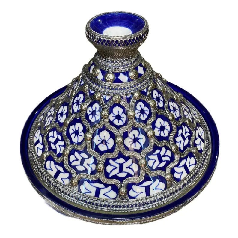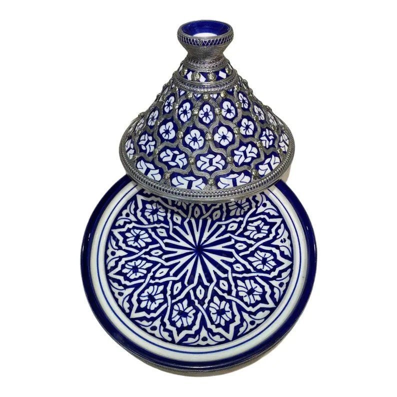 Fes ceramic tagine dish, handmade and hand-painted. This tagine is only for serving, and not for cook. This tagine dish is made to eat from in and also to decorate. This tagine is cooked twice at 1200 degrees, which allows it to be put in the dishwasher, also in the microwave.