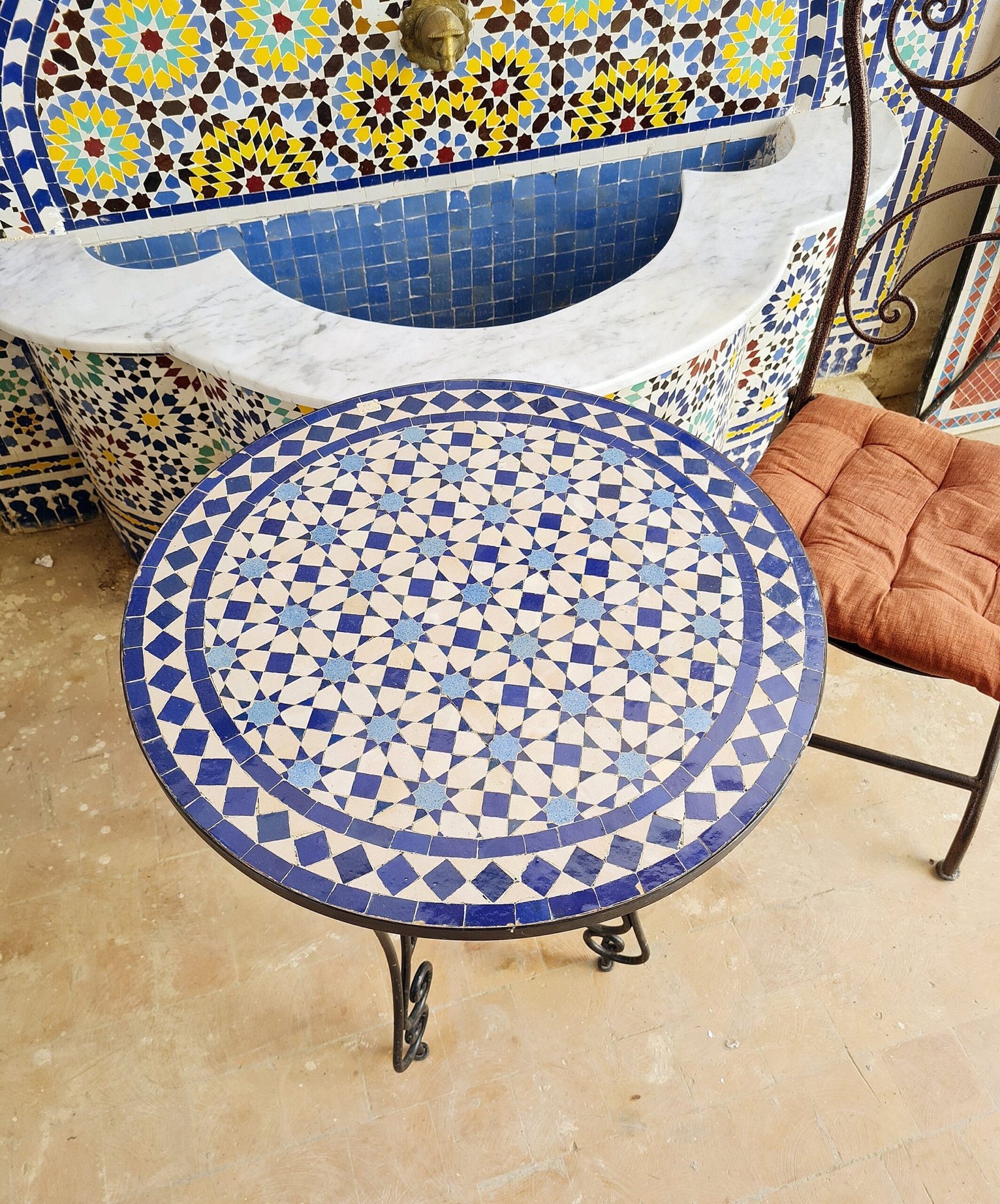Handmade Outdoor Coffee Table – Complicated Mosaic Pattern Green Table – Bistro Table GIFT