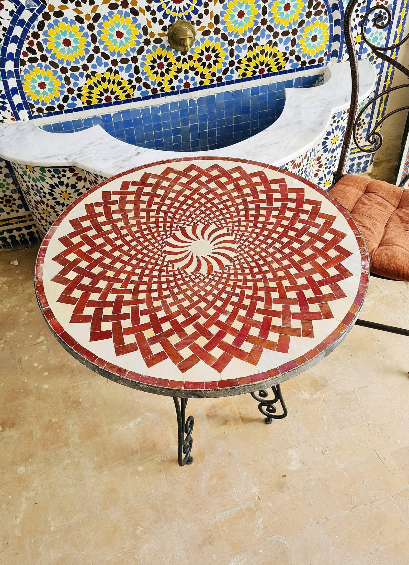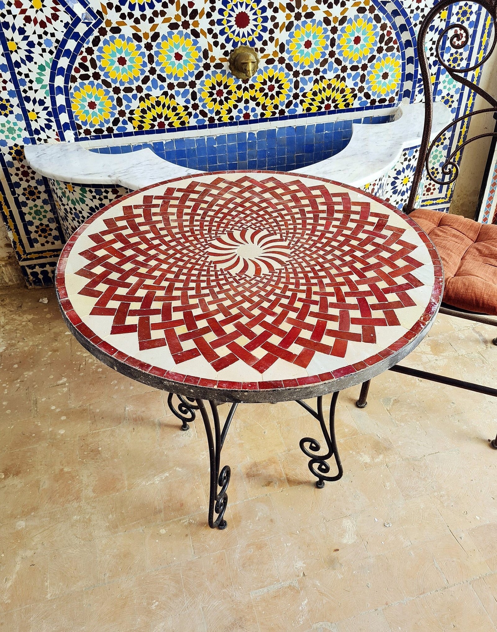 Handmade Outdoor Coffee Table – Complicated Mosaic Pattern Red Table – Bistro Table GIFT