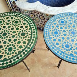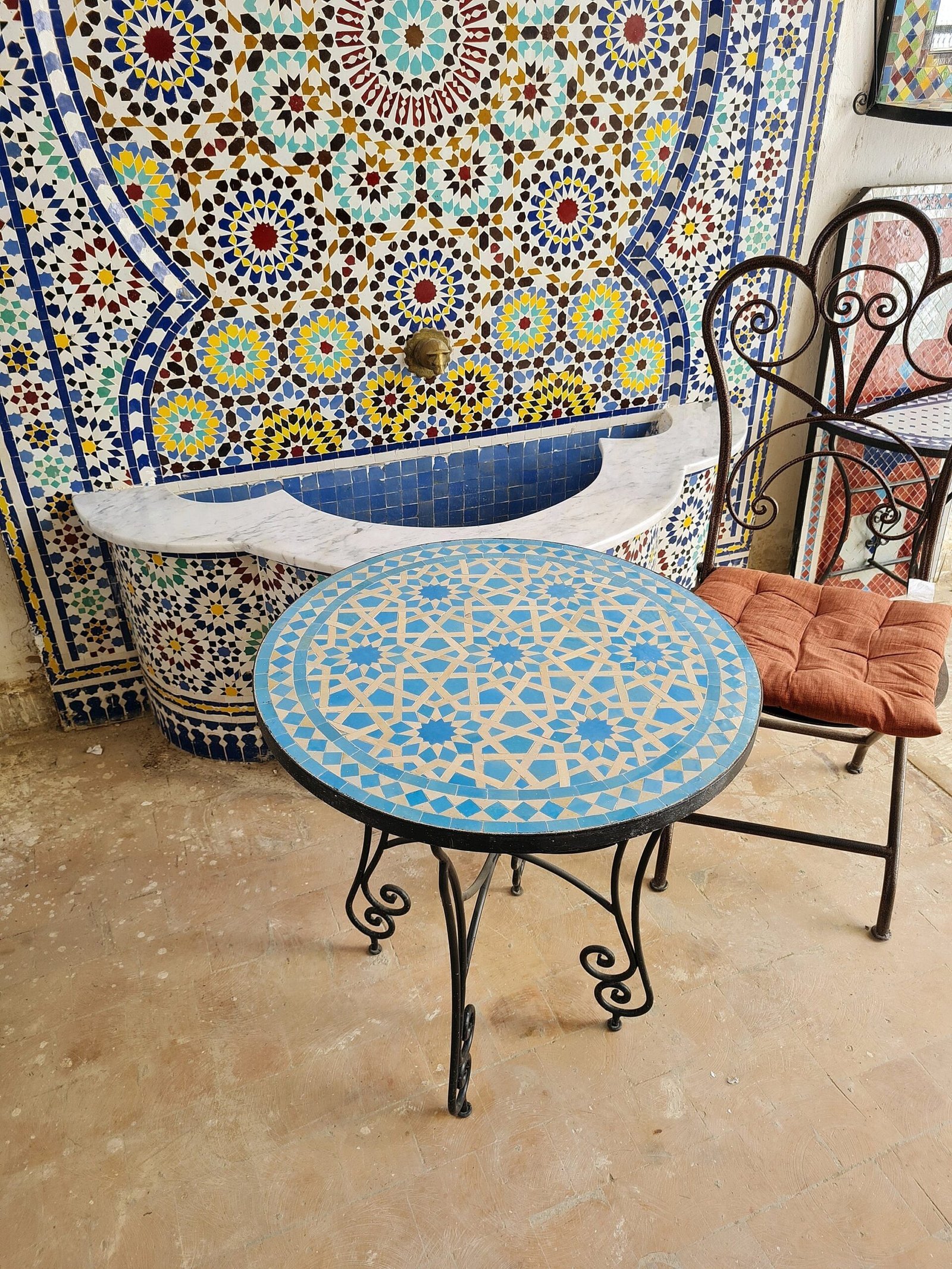 Handmade Outdoor Coffee Table – Complicated Mosaic Pattern Turquoise Table – Bistro Table GIFT