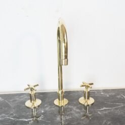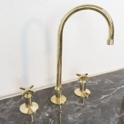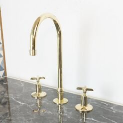 Handmade Widespread Unlacquered Brass Kitchen Faucet