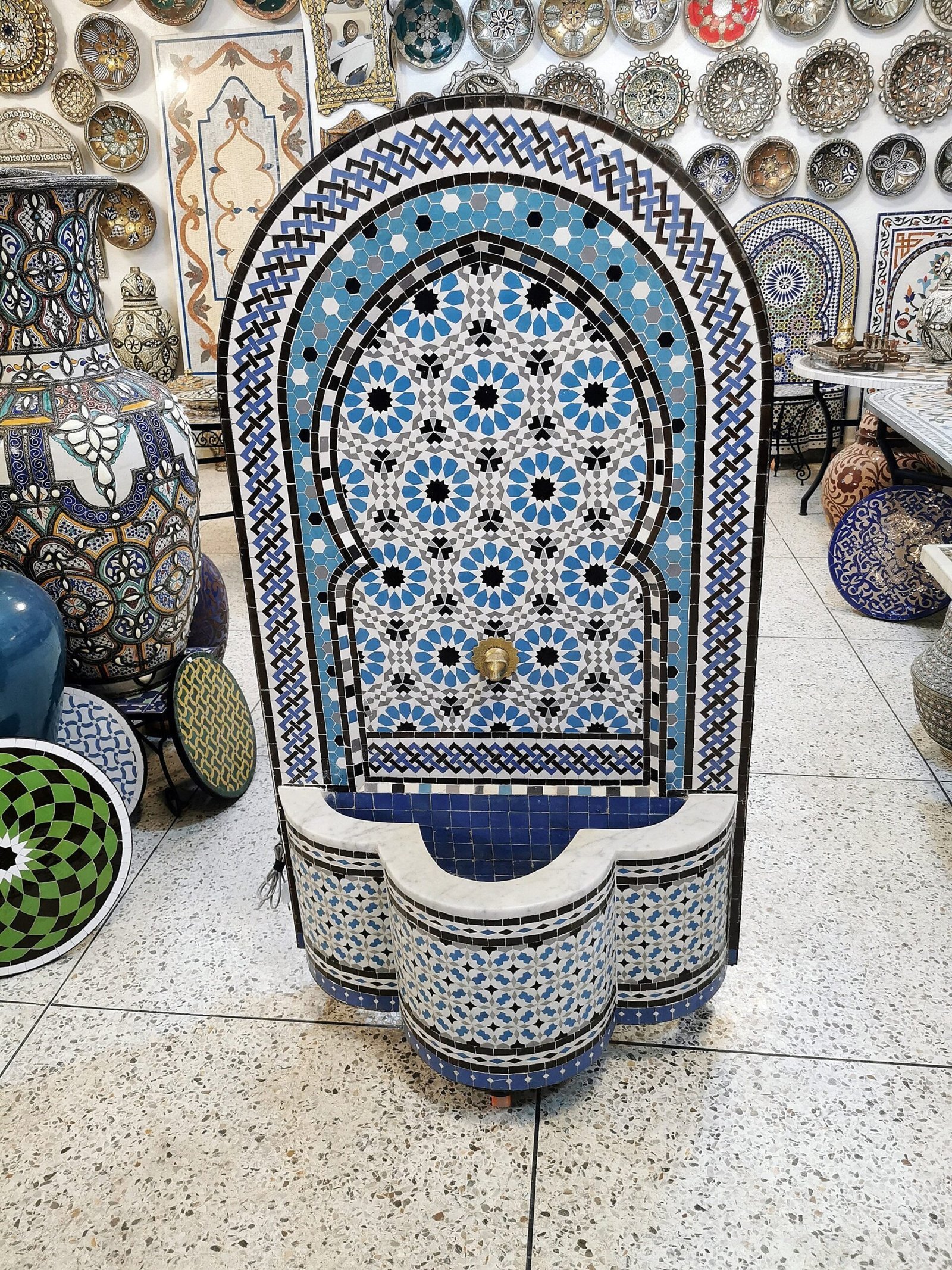 this amazing traditional Fountain was handcrafted by A professional worker, it represents the cultural diversity of Moroccan handcrafts and that is because of its design, material and the colors used at the surface of the table, the height of this amazing piece of art is 55 cm with a width of 40 cm and a possibility of personal customization. by obtaining such objects you would be helping a dying craft to flourish again so that contact between the past and the present would never die not mentioning the happiness it would bring to poor workers on fields like this .