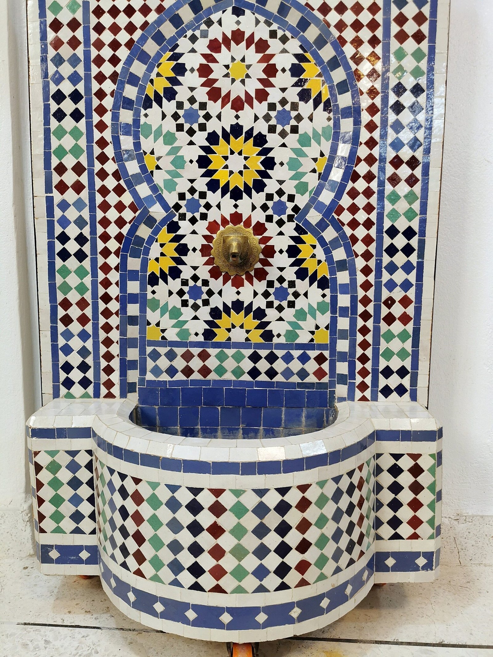 this amazing traditional Fountain was handcrafted by A professional worker, it represents the cultural diversity of Moroccan handcrafts and that is because of its design, material and the colors used at the surface of the table, the height of this amazing piece of art is 55 cm with a width of 40 cm and a possibility of personal customization. by obtaining such objects you would be helping a dying craft to flourish again so that contact between the past and the present would never die not mentioning the happiness it would bring to poor workers on fields like this .