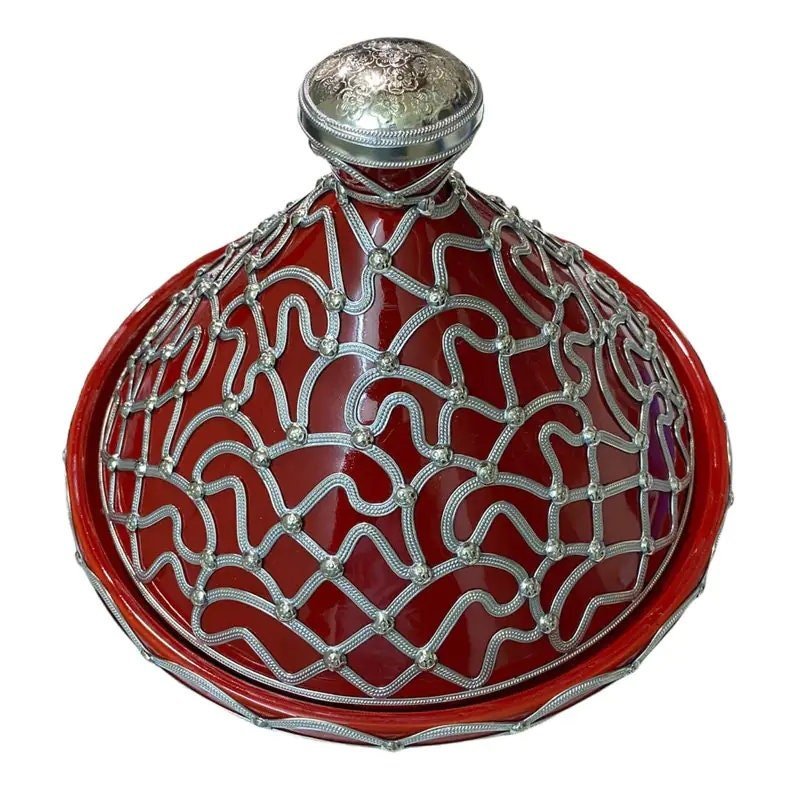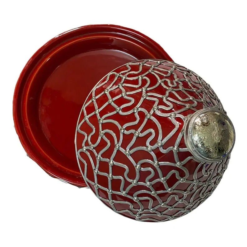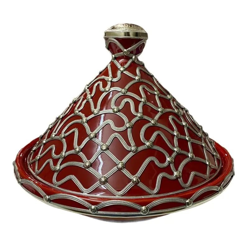 Fes ceramic tagine dish, handmade and hand-painted. This tagine is only for serving, and not for cook. This tagine dish is made to eat from in and also to decorate. This tagine is cooked twice at 1200 degrees, which allows it to be put in the dishwasher, also in the microwave.