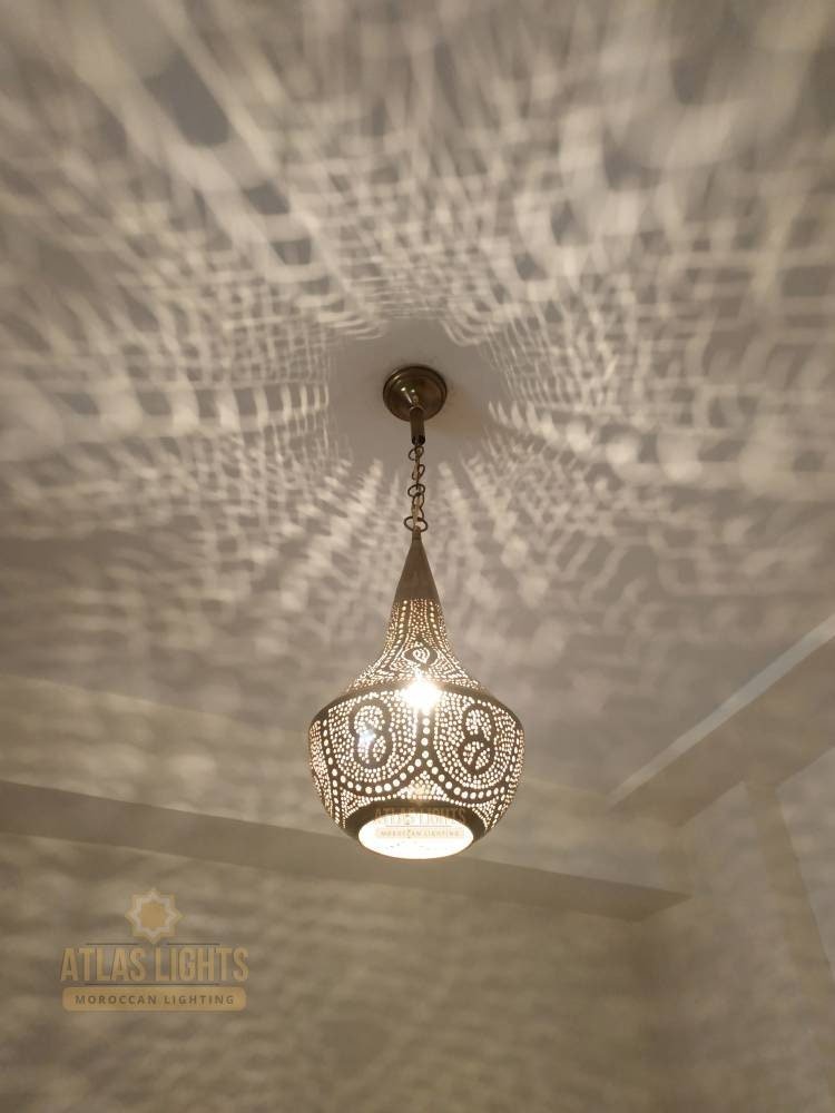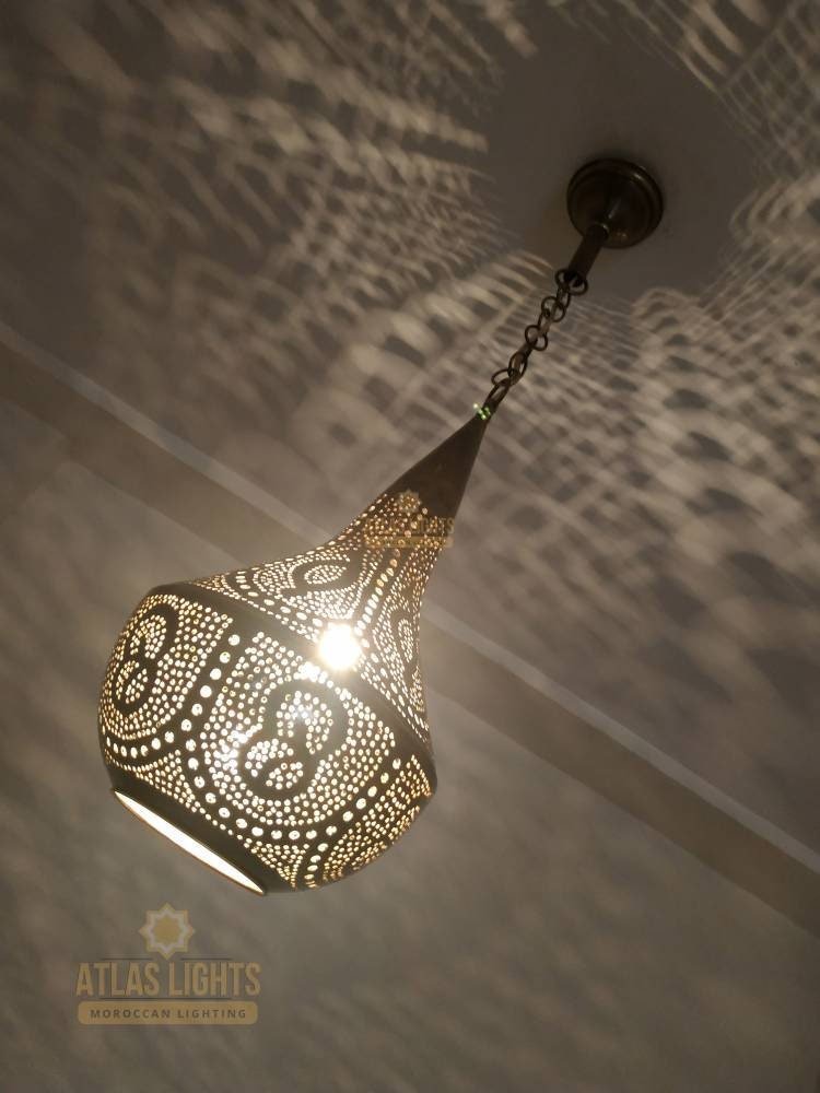 Moroccan pendant brass Mina lamp Light is the perfect addition for your living space. Its effortless style and unique design makes it refreshingly modern and classy. The light displays a pleasant and soothing environment. Moroccan lighting not only lifts up the ambiance of a room but also the mood by its soothing shades.