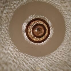 Once lit, the pendants body is illuminated and brings out the pattern work within the light. Surrounding walls are adorned with both warm light and stunning floral motifs.
