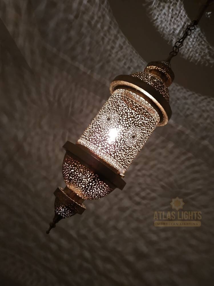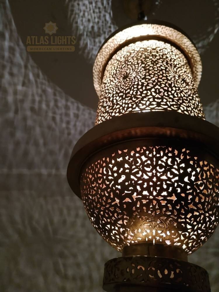 Moroccan Pendant Brass Lights Vintage Lamp Hanging Chandelier Ceiling Fixture Rose Handemade Lighting Art Deco.
