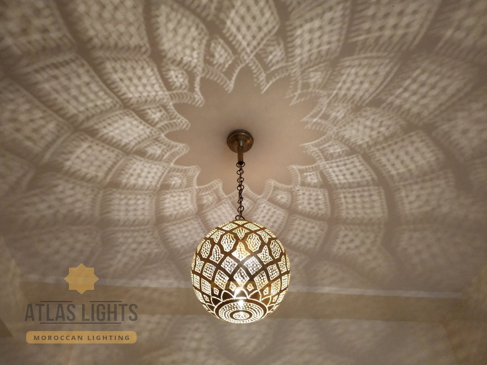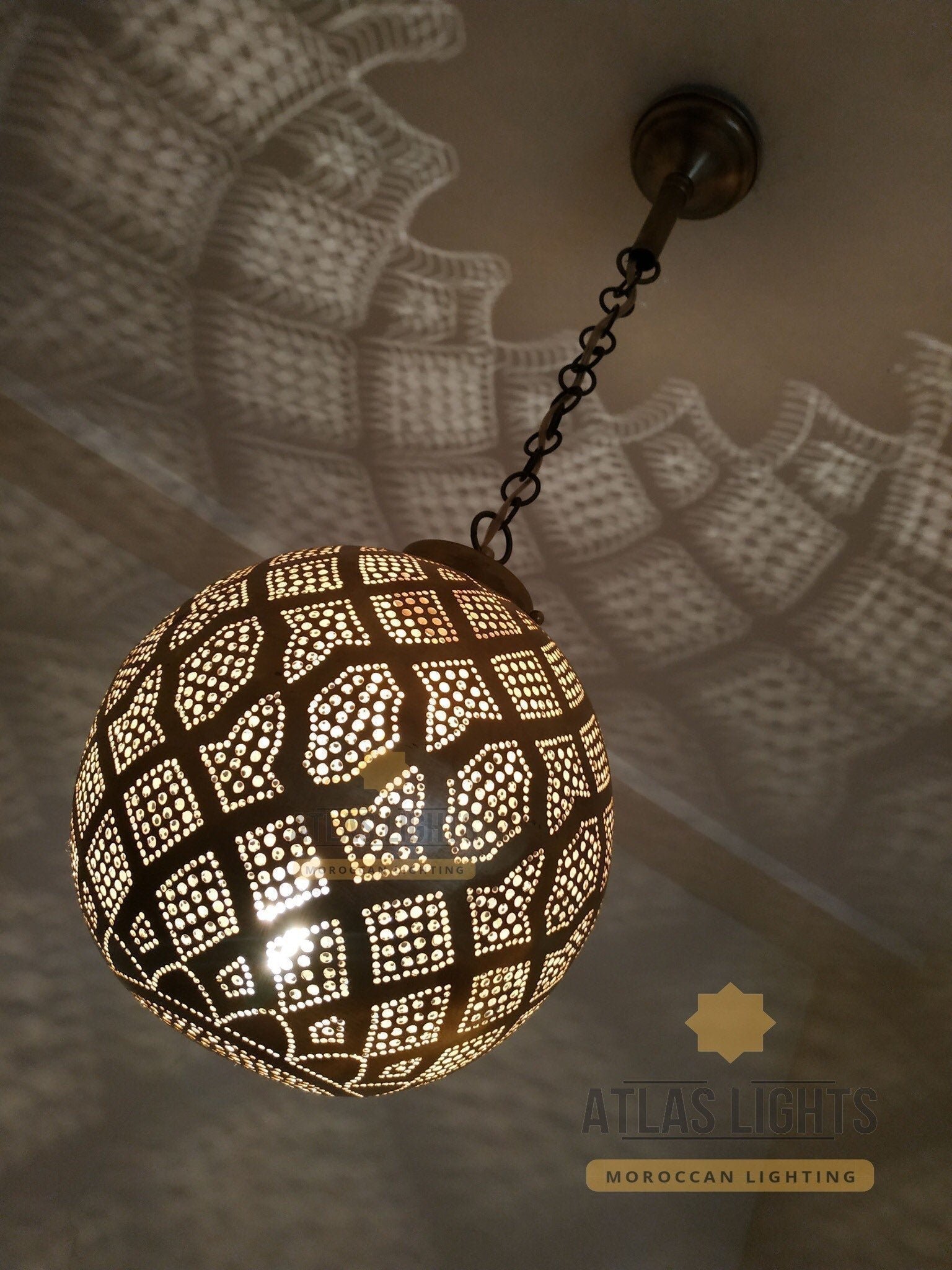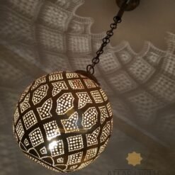 Delicately handmade with our artisans’ ‘punching’ technique, our Moroccan vintage hanging ceiling light Moroccan pendant light is contemporary and emits a sparkling light through each of its punched circles.