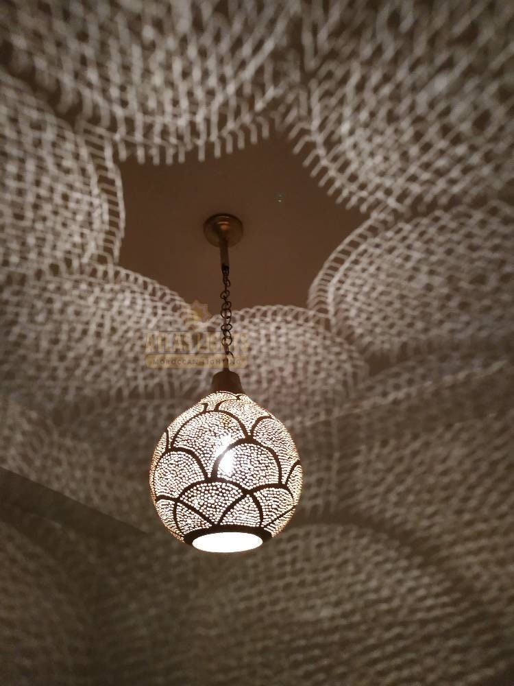 A suspension in the form of an open pressed pear which will add a touch of craftsmanship to your interior by diffusing a reflection on the ceiling as well as the walls, and to illuminate the room.