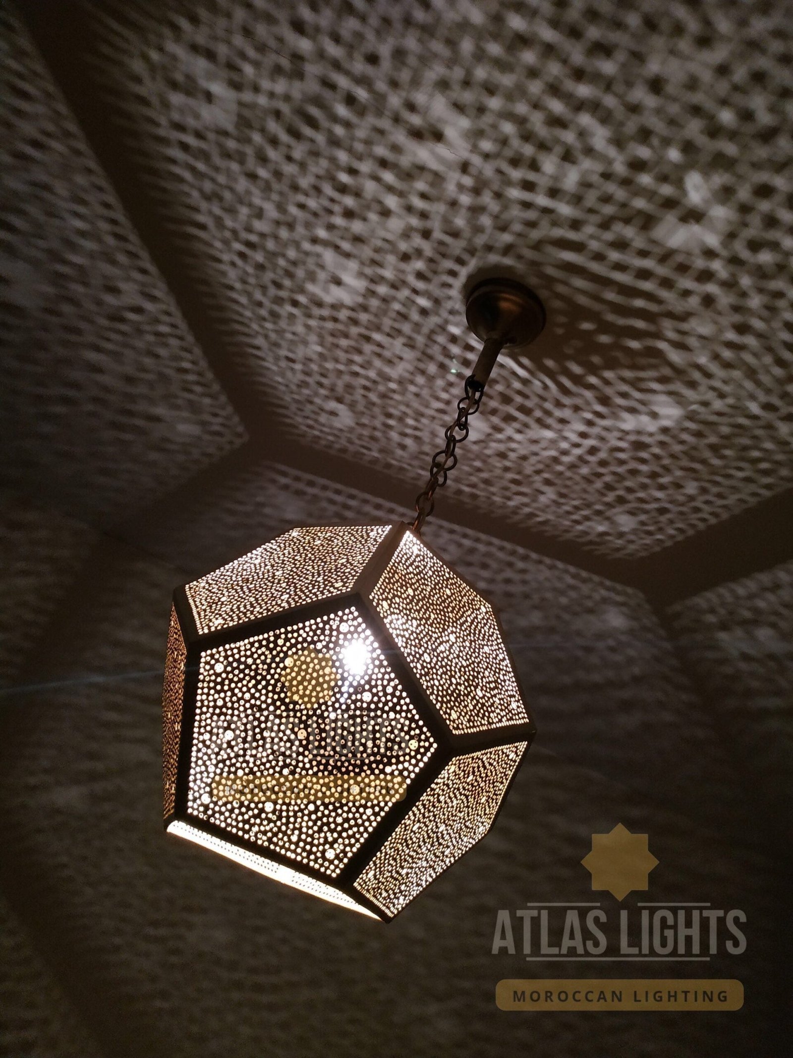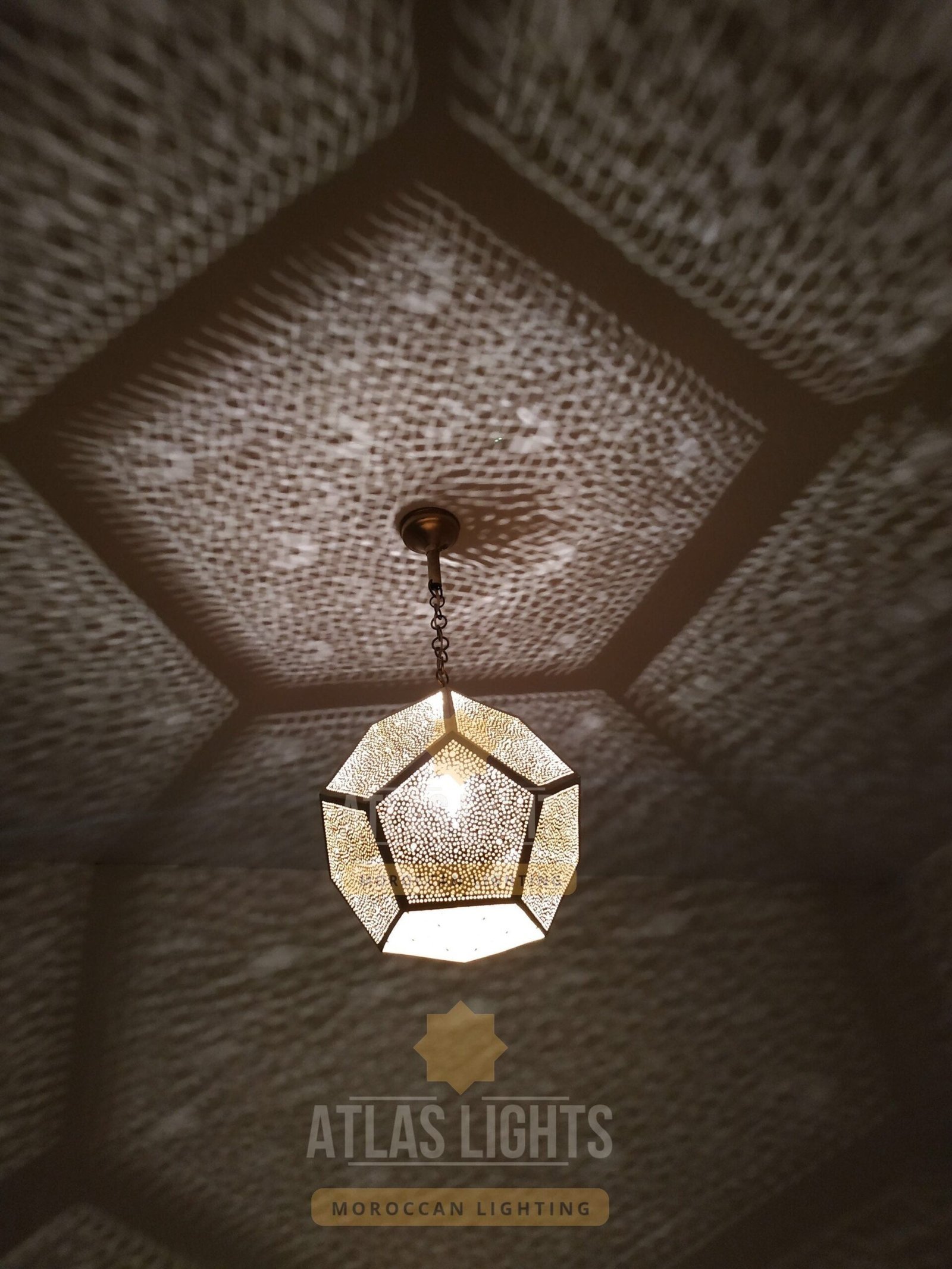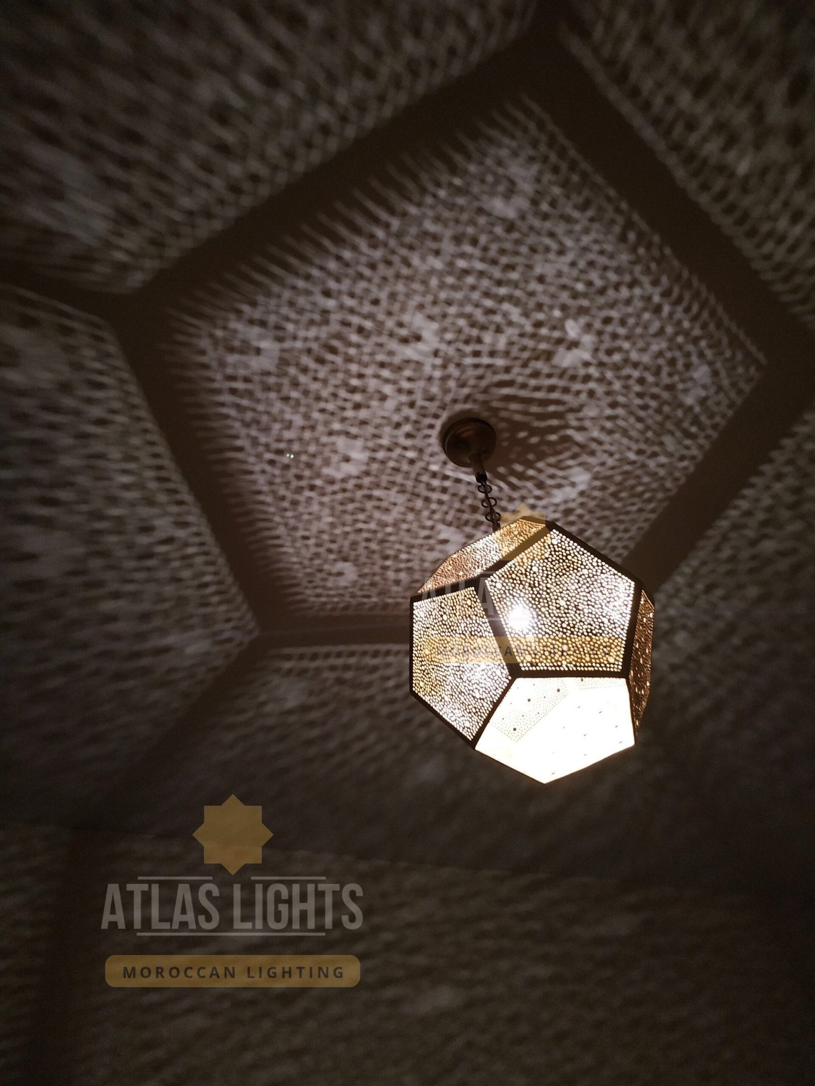 Moroccan dodecahedron Hanging Pendant Lighting Moroccan style ceiling lights hexagon shape is made in Morocco by talented artisans, and will reflect amazing shades to your wall and ceiling.