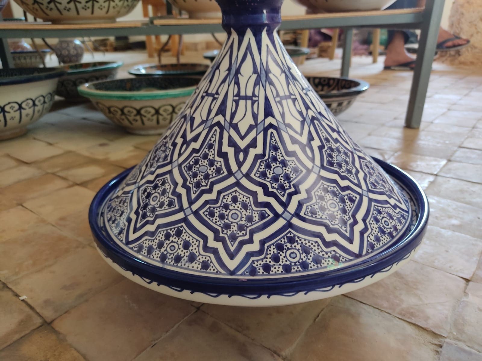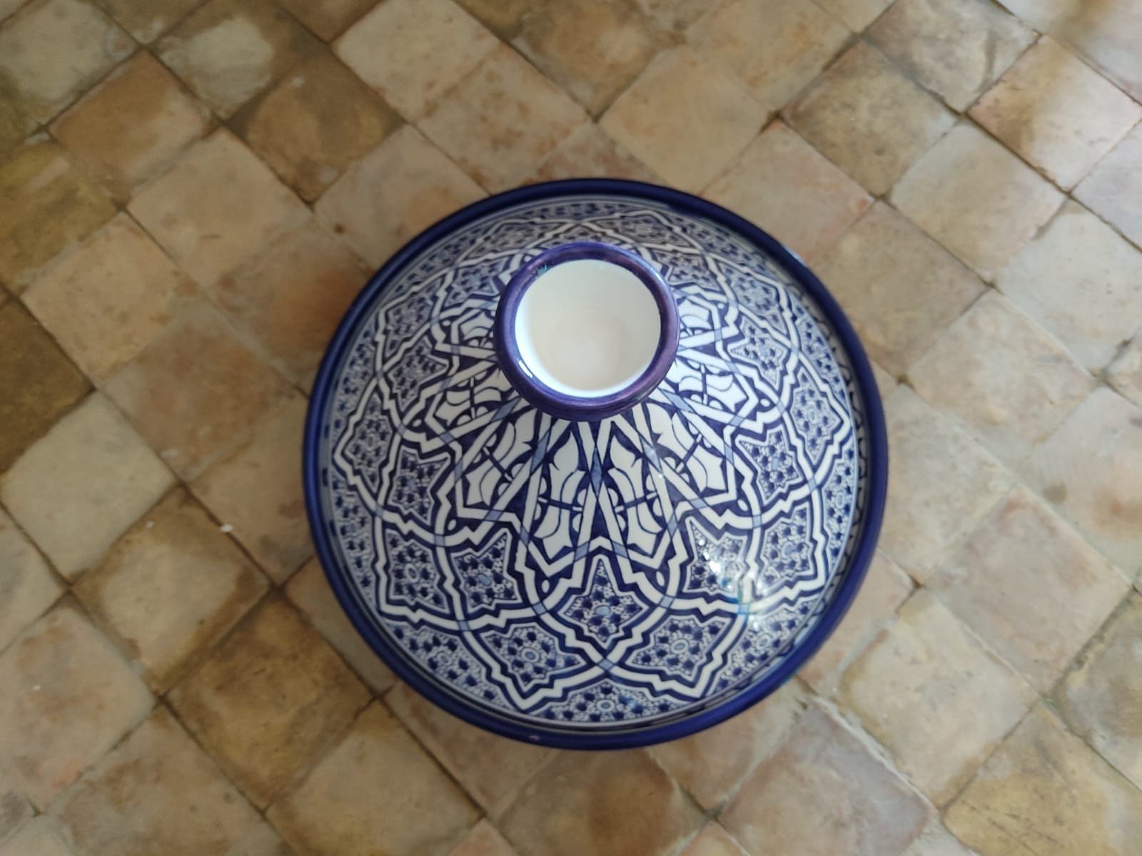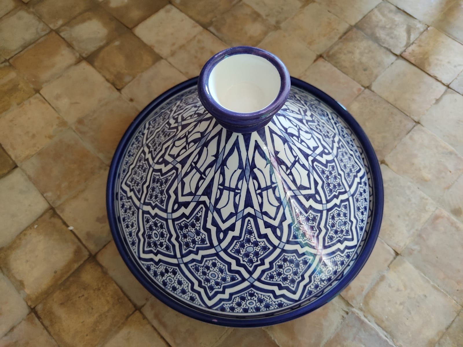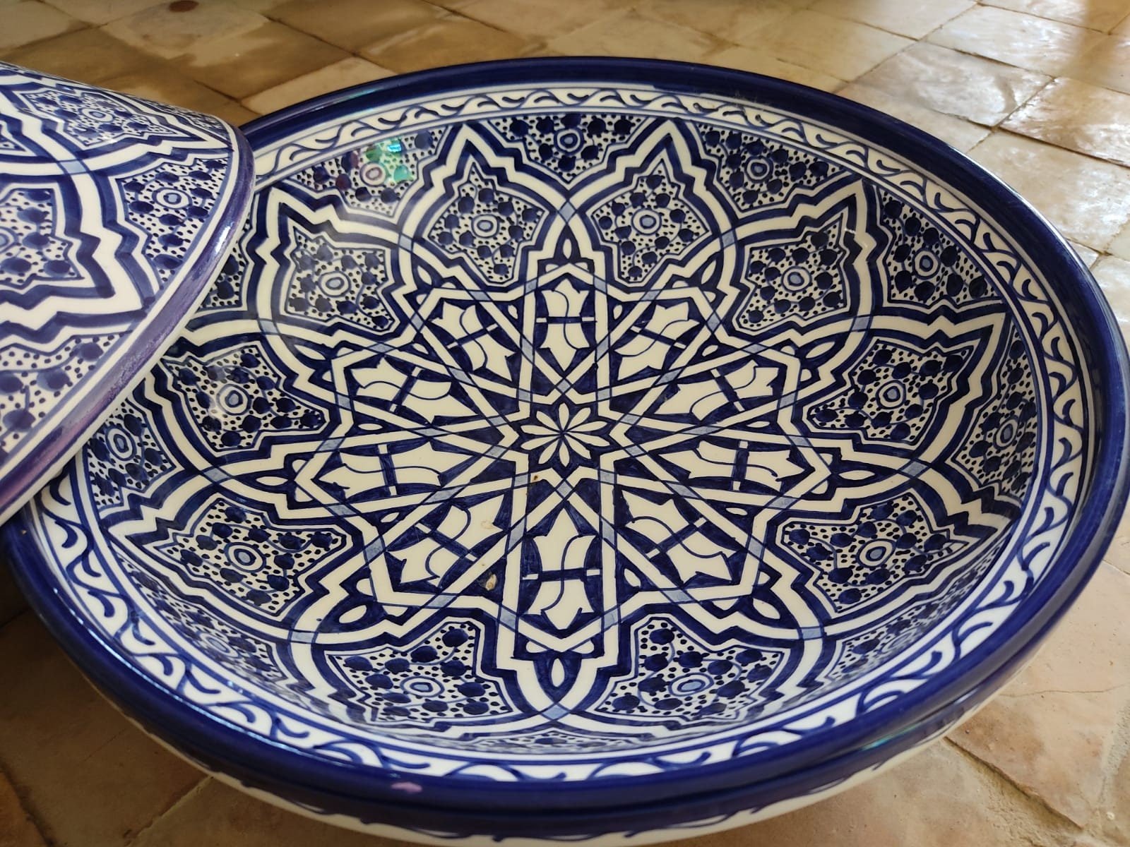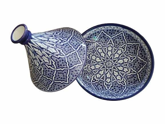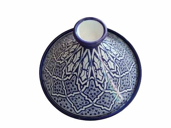 this tagine can be used as a serving dish or as a decoration item. It is entirely handmade and hand-painted and signed at the bottom.