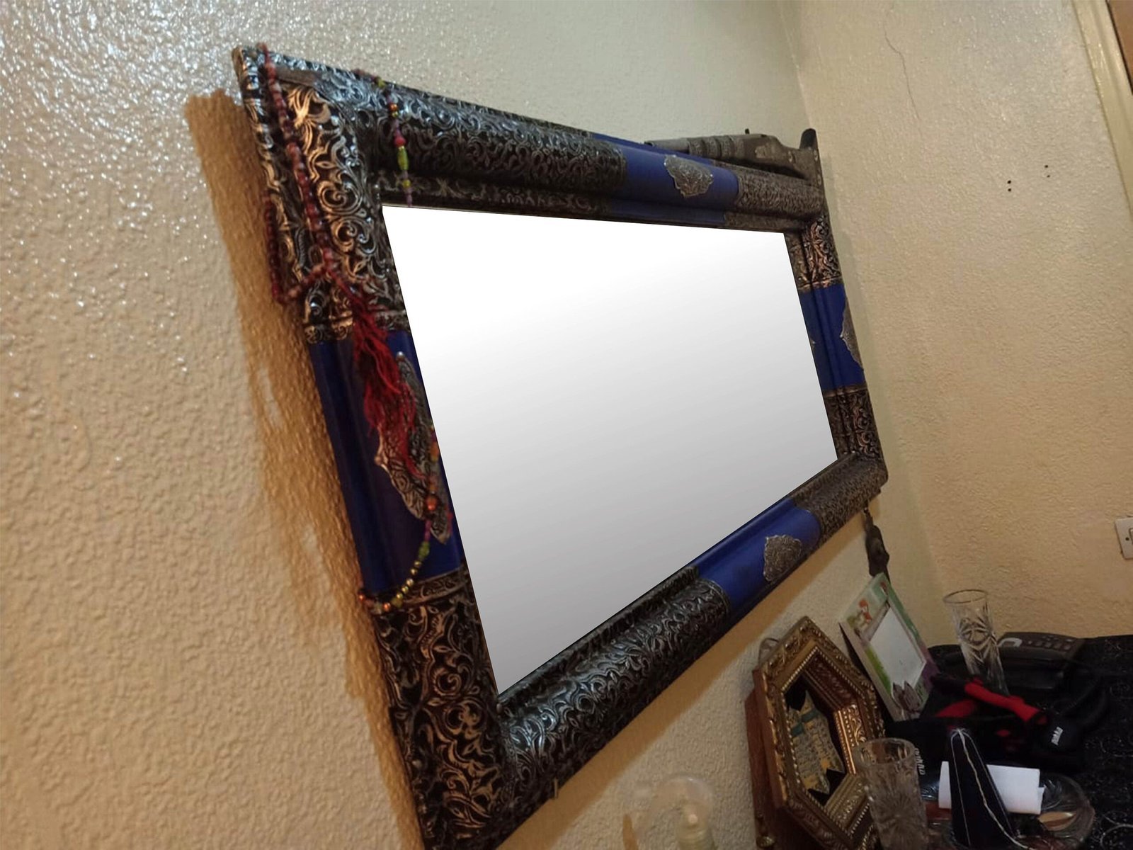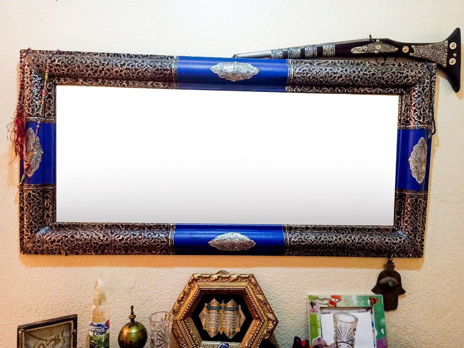 Moroccan Mirror, 100% Handmade, silver Color, Wall Mirror, Engraved Metal and brass,