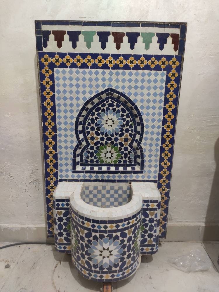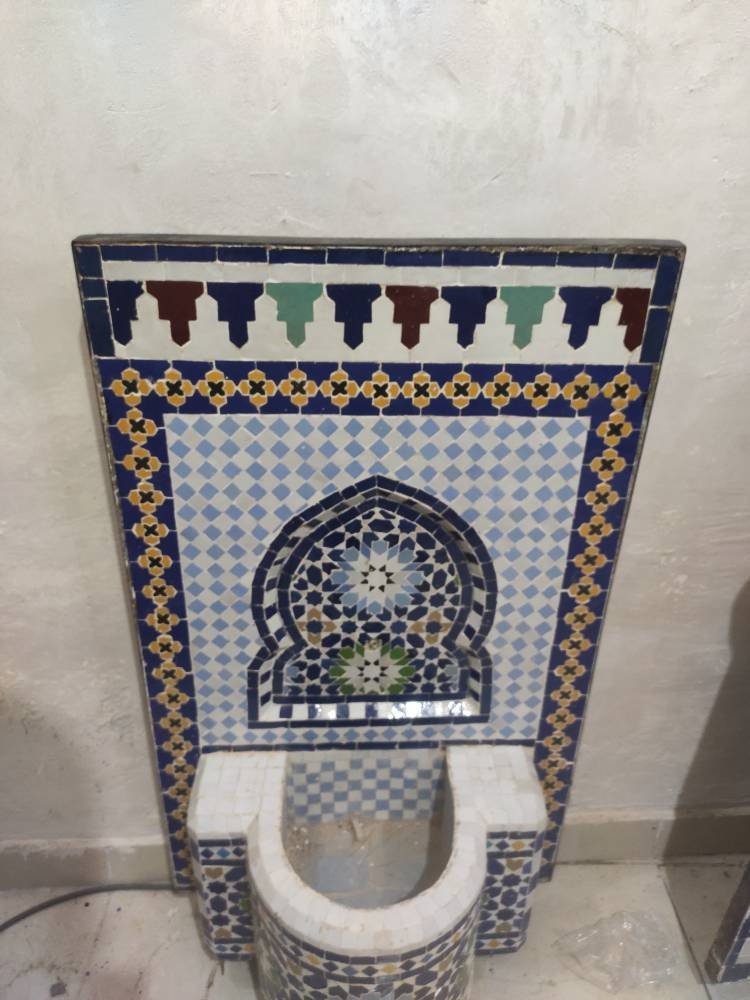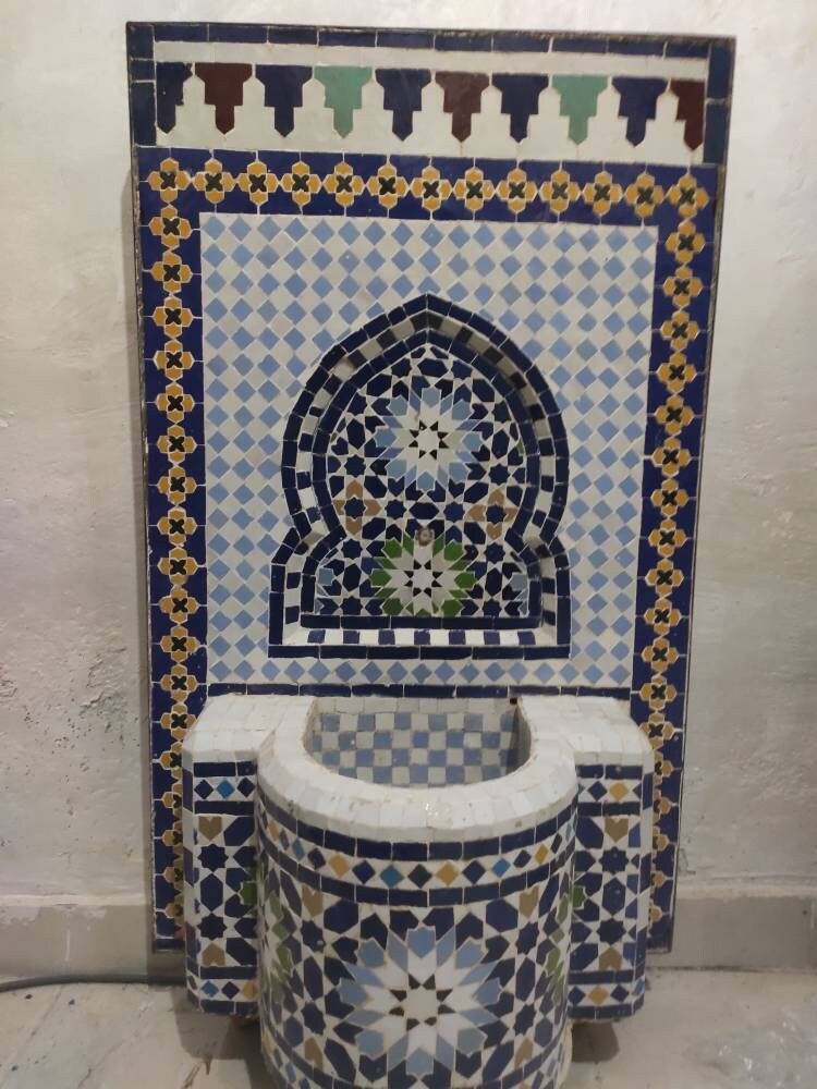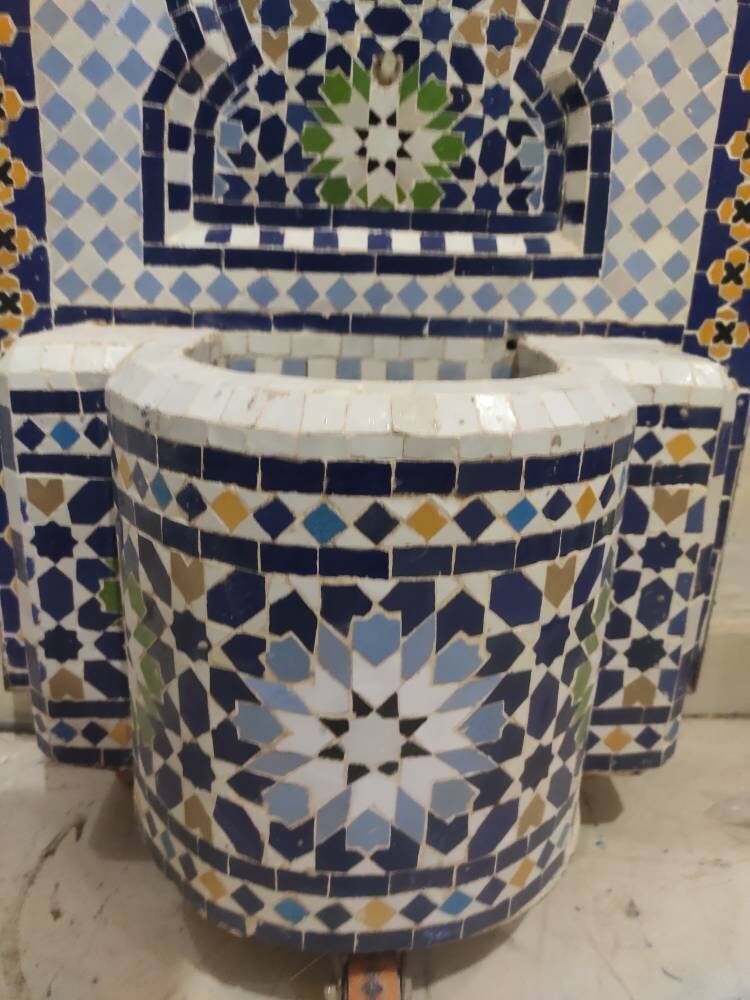 Our fantastic Moroccan Zellige Tile Fountains are handmade in a workshop in small workshop. Morocco is renowned for its incredibly intricate tile work called zellige, with hundreds of hand cut tile pieces carefully placed in remarkably intricate designs. Each water fountain is unique and one of a kind, with the design inspired by the Moroccan tradition!