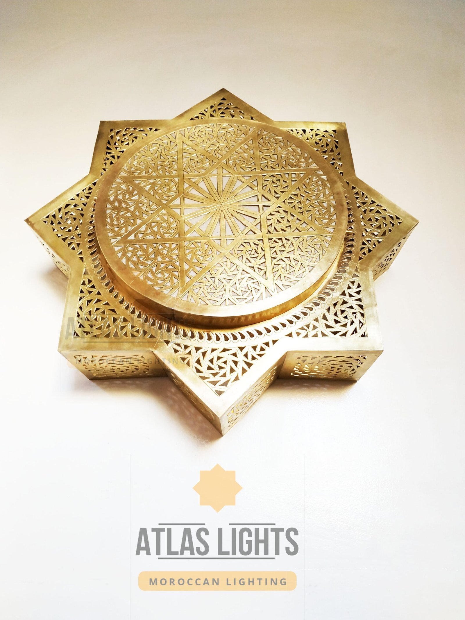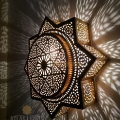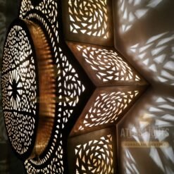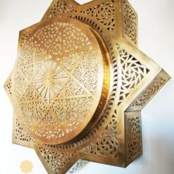 This Moroccan piece of art can be using as wall lamp or as a Flush Mount Ceiling Light. with its beautiful Octagram shape and the power of the brass the lamp will give the place prestige and elegance of the Middle Ages,