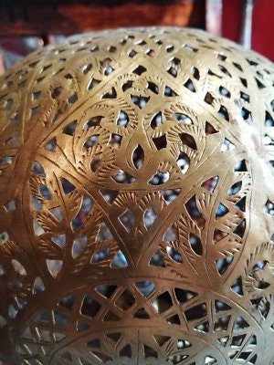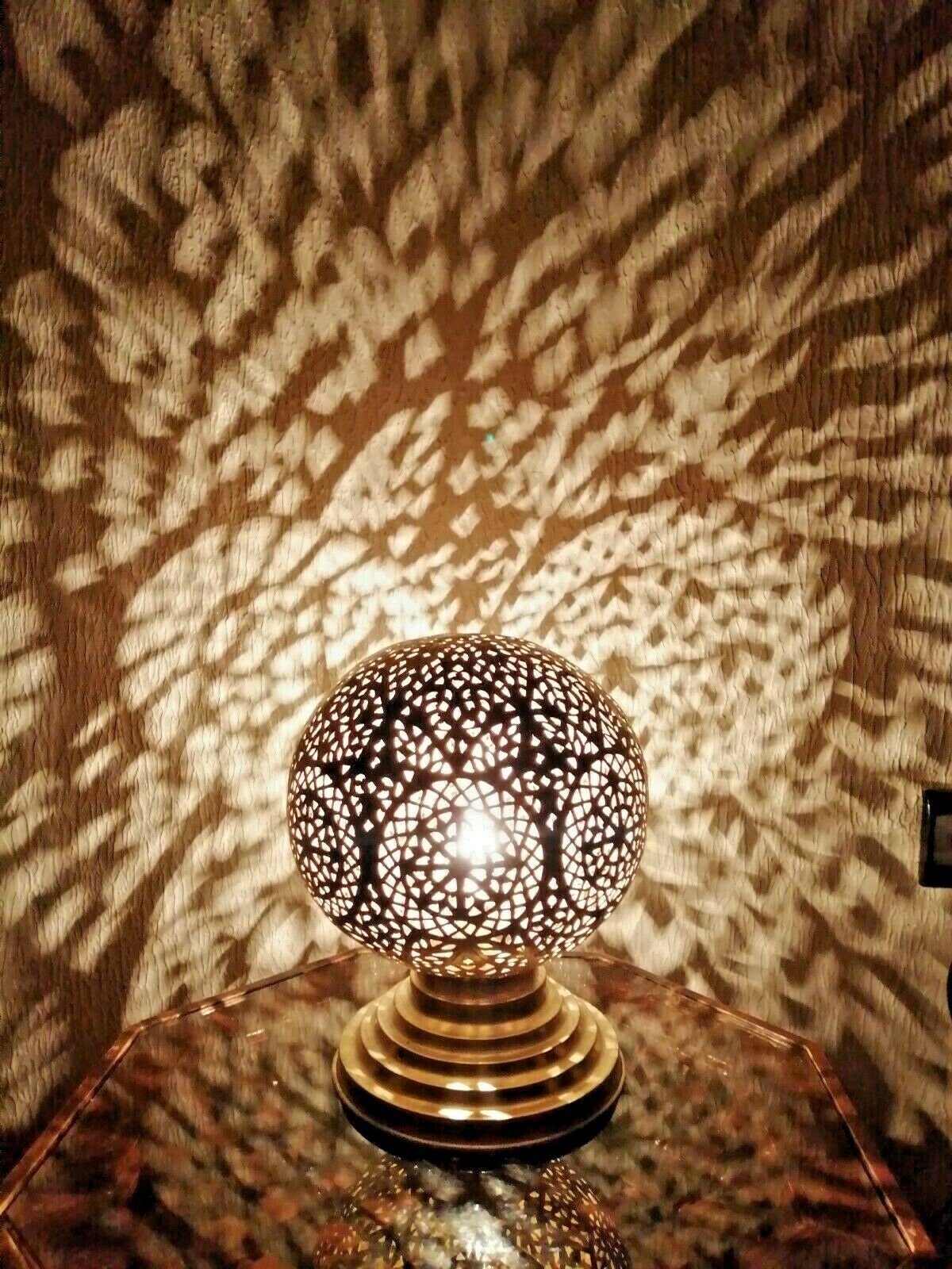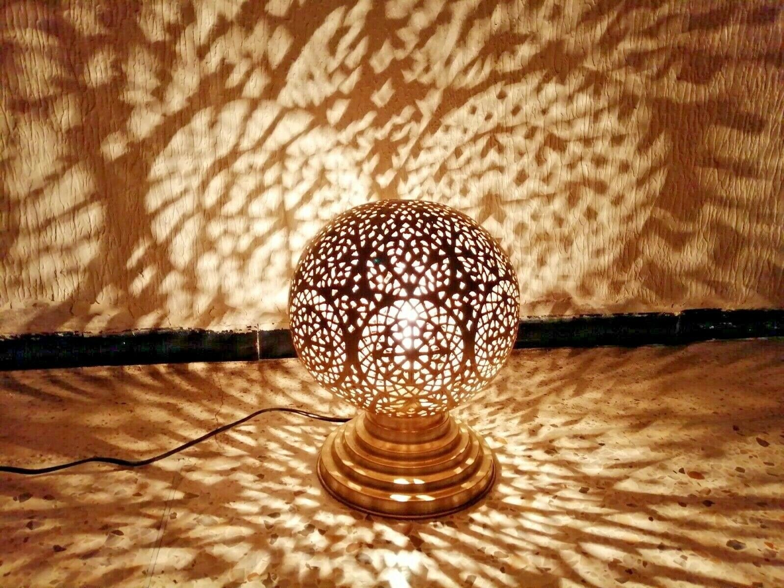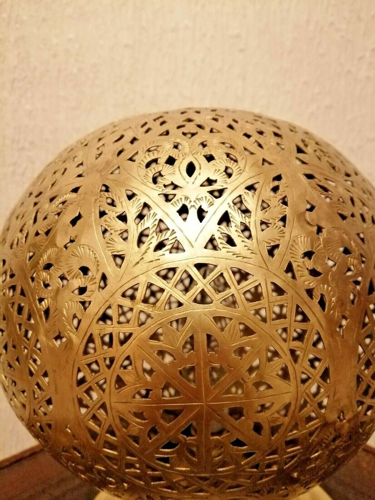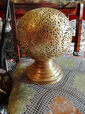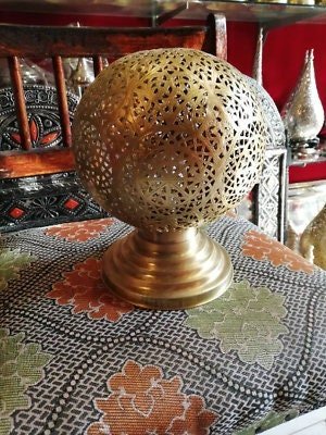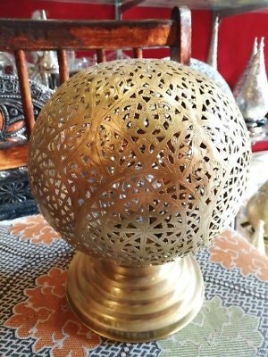 Moroccan Spherical Night Light Oriental Brass Table lamp Lampshade Handmade,Moroccan Table Lamp, Handmade Brass Lamp Style Modern lamp Vtg