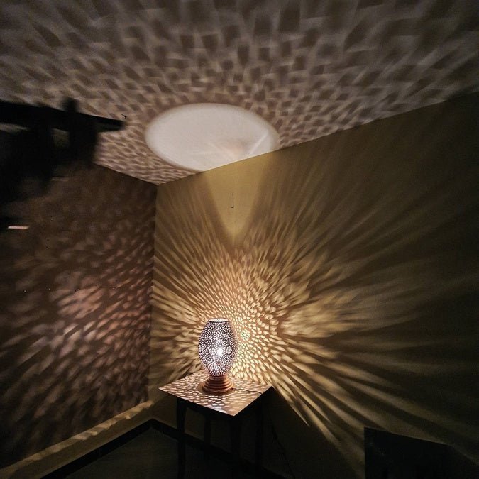 Moroccan handcrafted Copper Standing Lamp with a beautiful reflection of the light