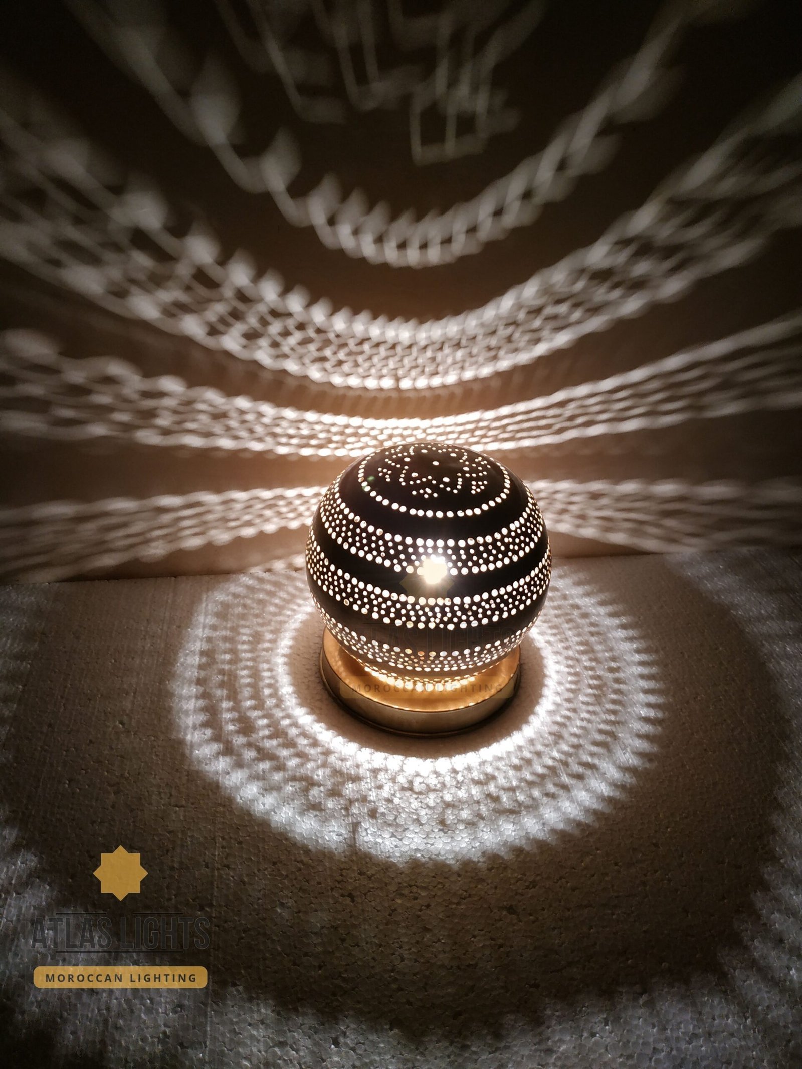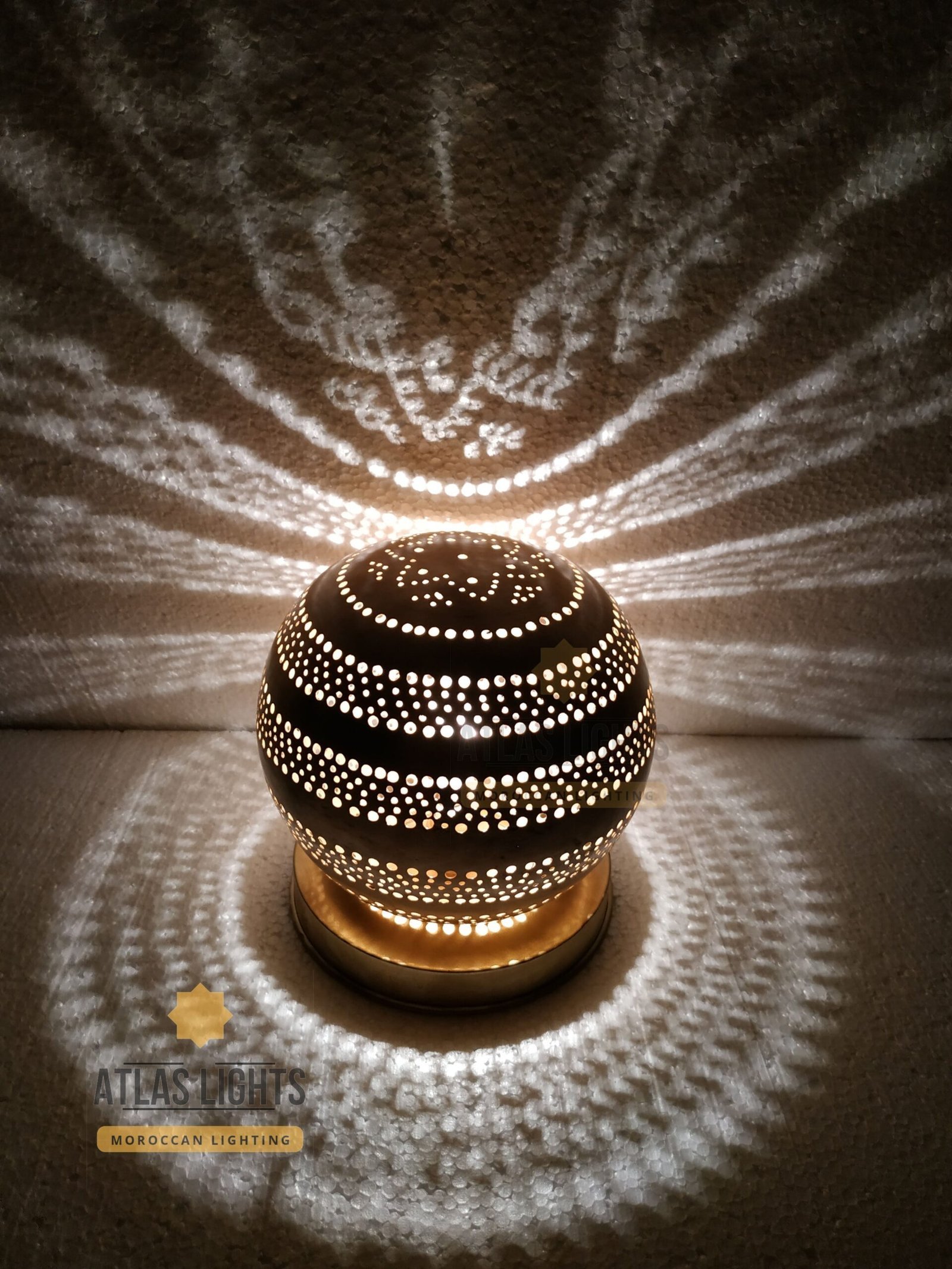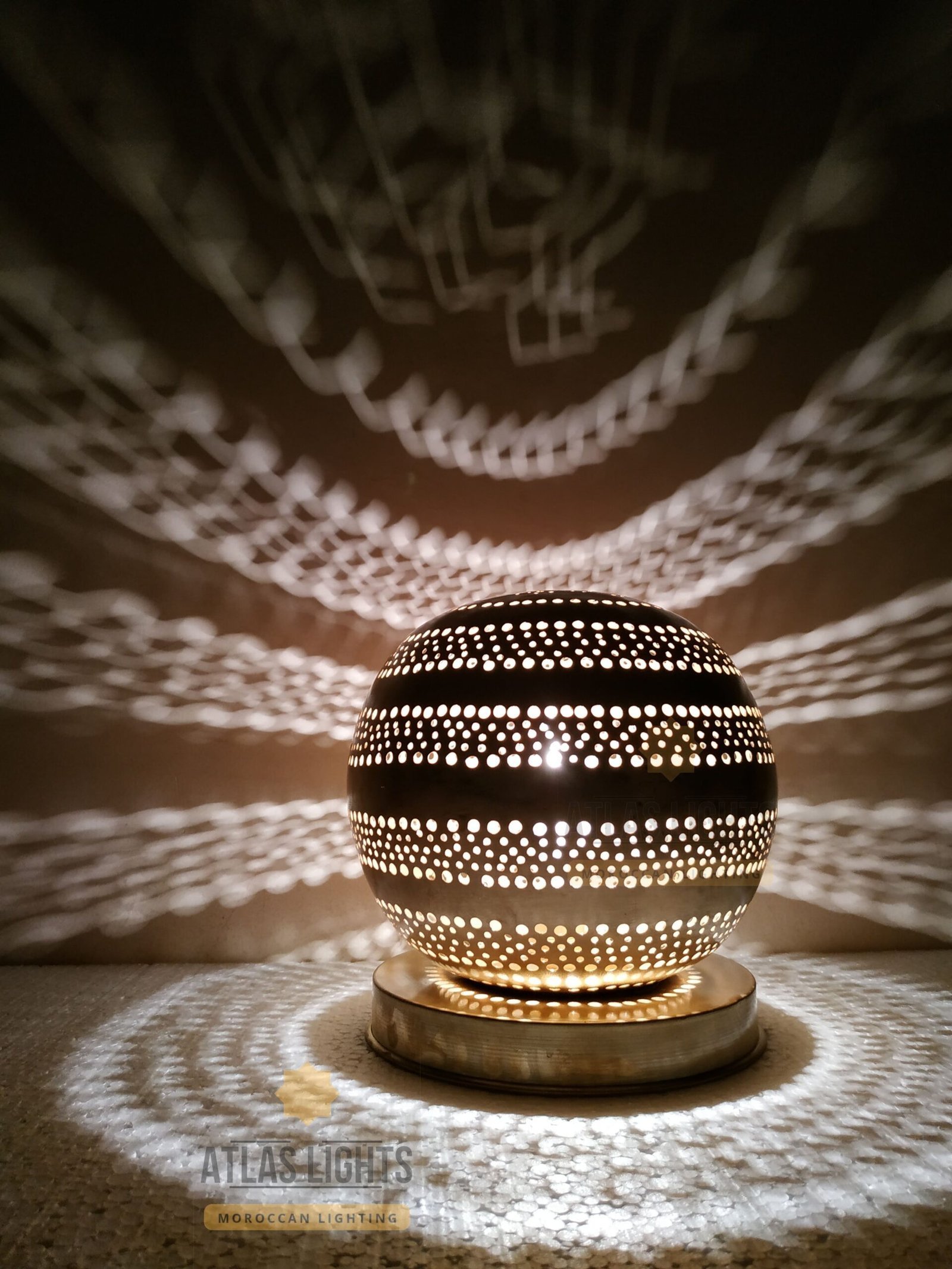 This Table lamp is made by moroccan master craftsmen in Brass the surface is perforated, which will add a touch of craftsmanship to your interior by diffusing a reflection on the walls as well as the ceiling , and to illuminate the room.