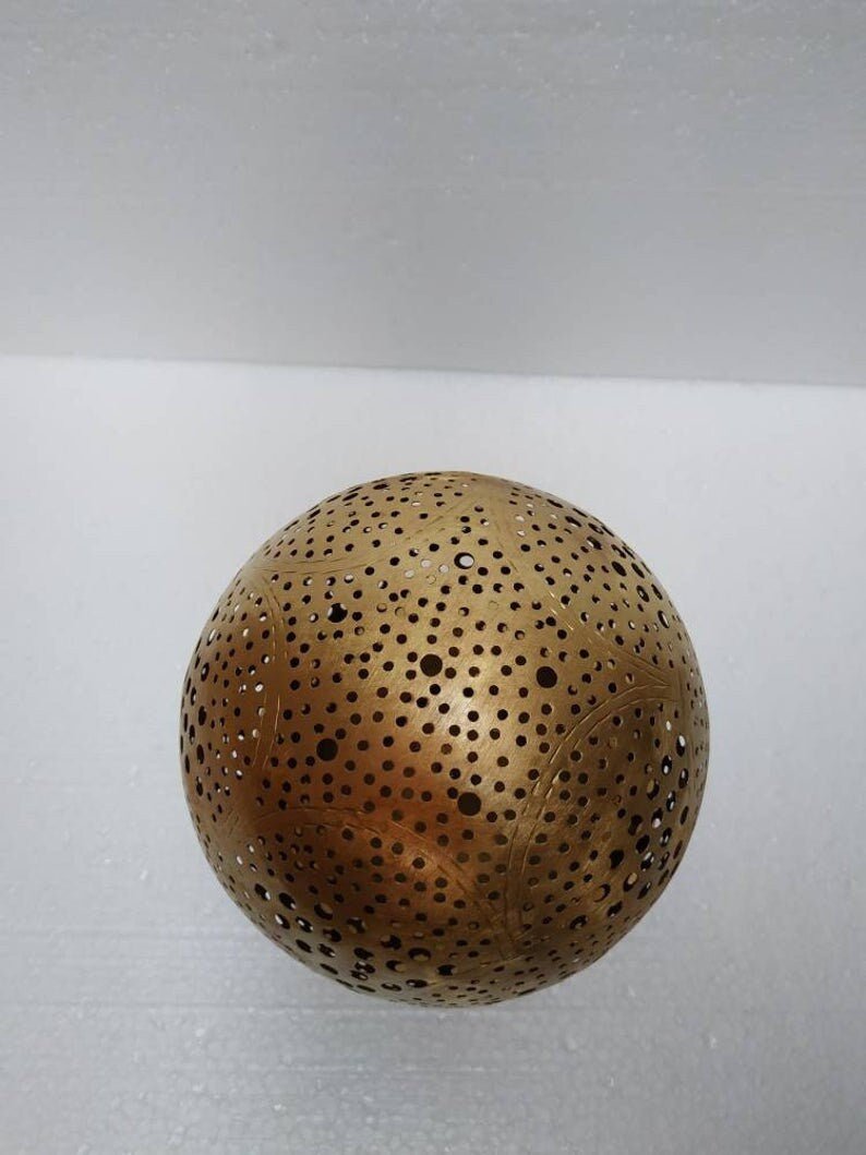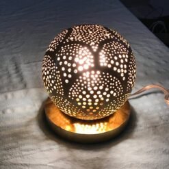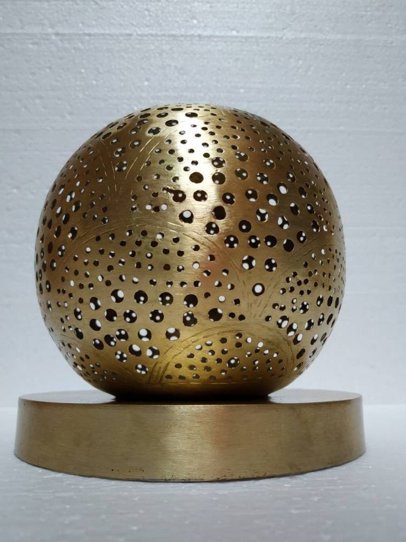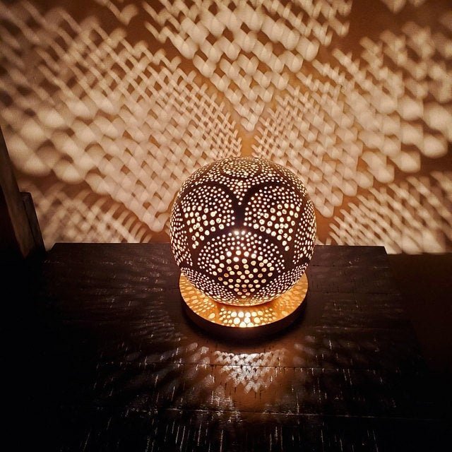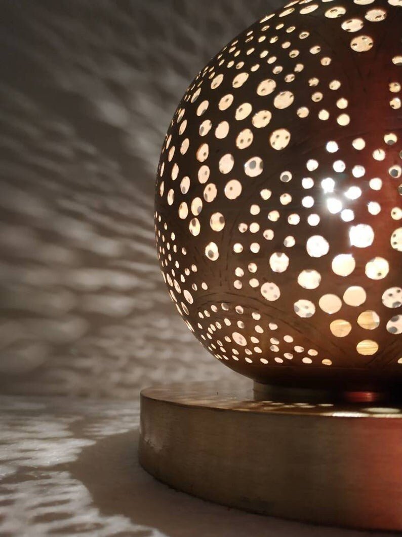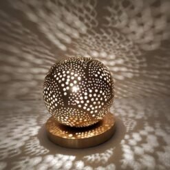 Moroccan night light in the shape of a sphere, lampshade, lantern, and decoration made of brass made by hand. Perfect decor for your home for any room in your home: bedroom, living room, entry, and office.