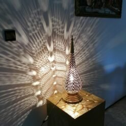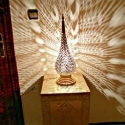 Table and floor lamp producing a great effect in the room when lighting, giving a Moroccan and oriental style to your interior design.