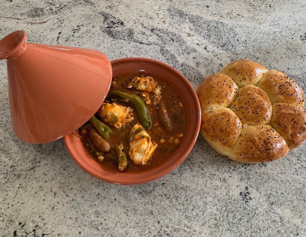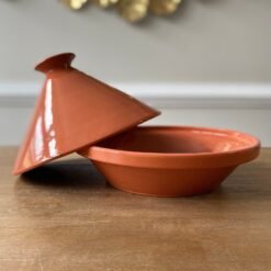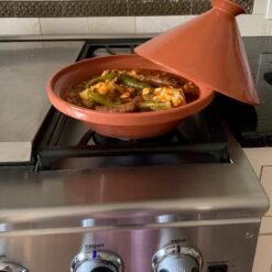 This classic, large terra-cotta tagine, is the ultimate cooking vessel that can be used on the stove and grill, or in the oven! The tagine is a traditional North African cooking vessel that was used for centuries by nomads to cook over an open flame. Fast-forward to modern times, it is still an ideal vessel for cooking over flame, either on your gas stove or on a grill. It can also be used to cook in the oven as well! These tagines are also microwave and dishwasher safe.