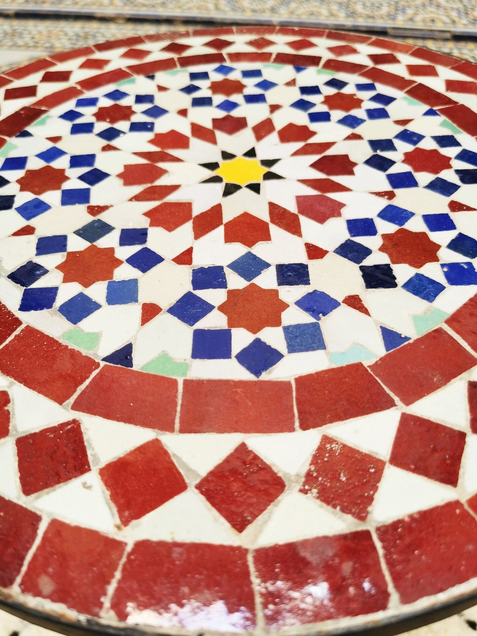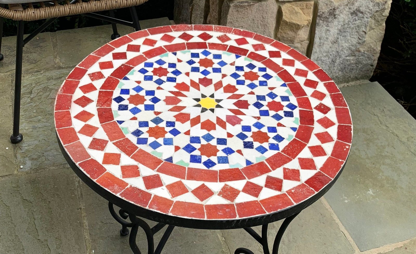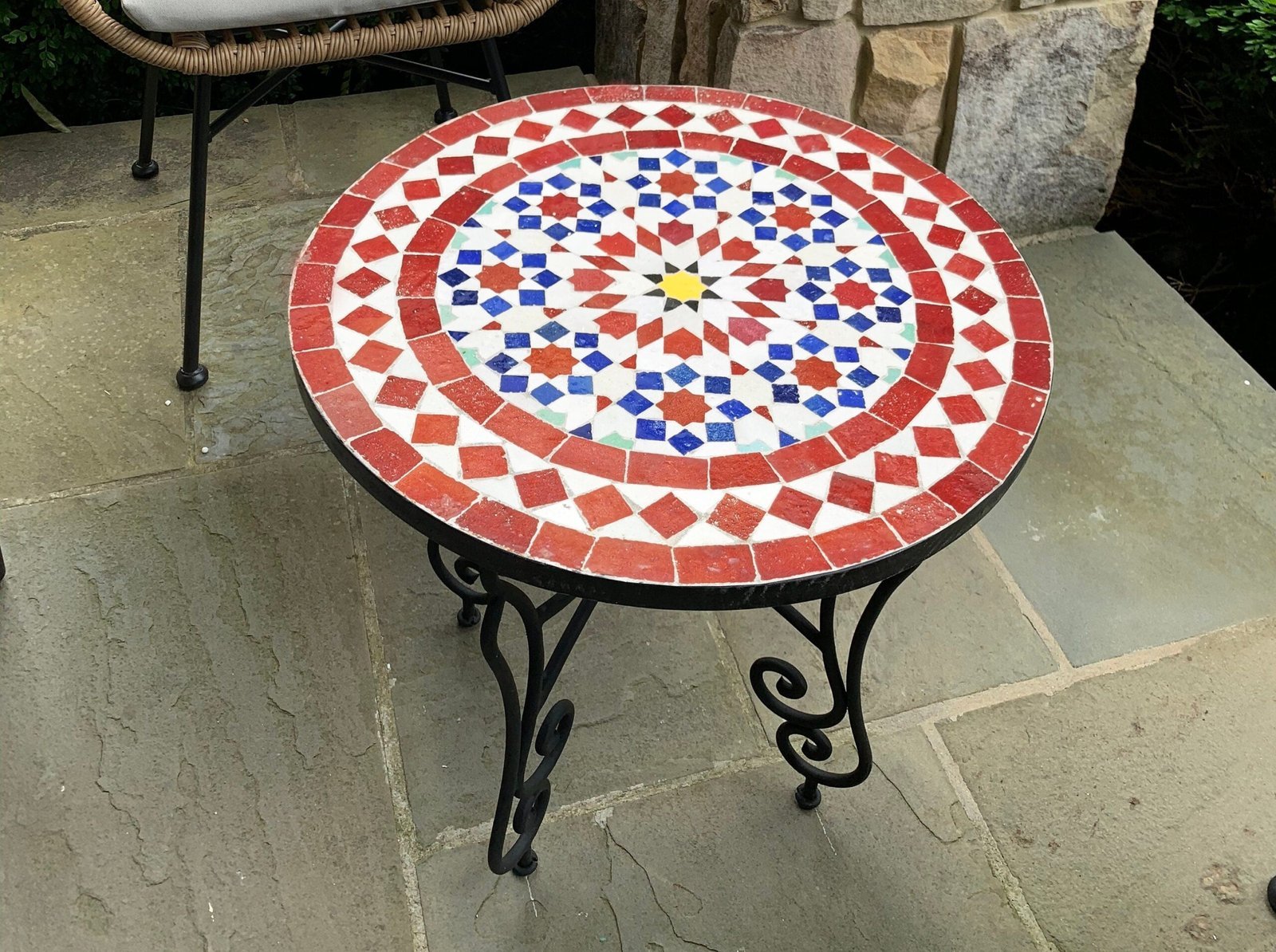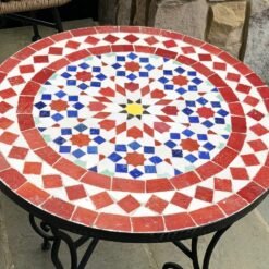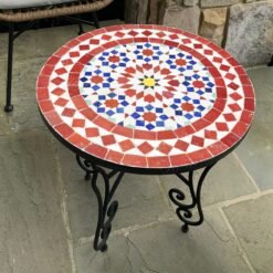 Mosaic Patio Table – Red & Blue Zellige Table – Custom Your Height – Mid Century Design For Outdoor and Indoor