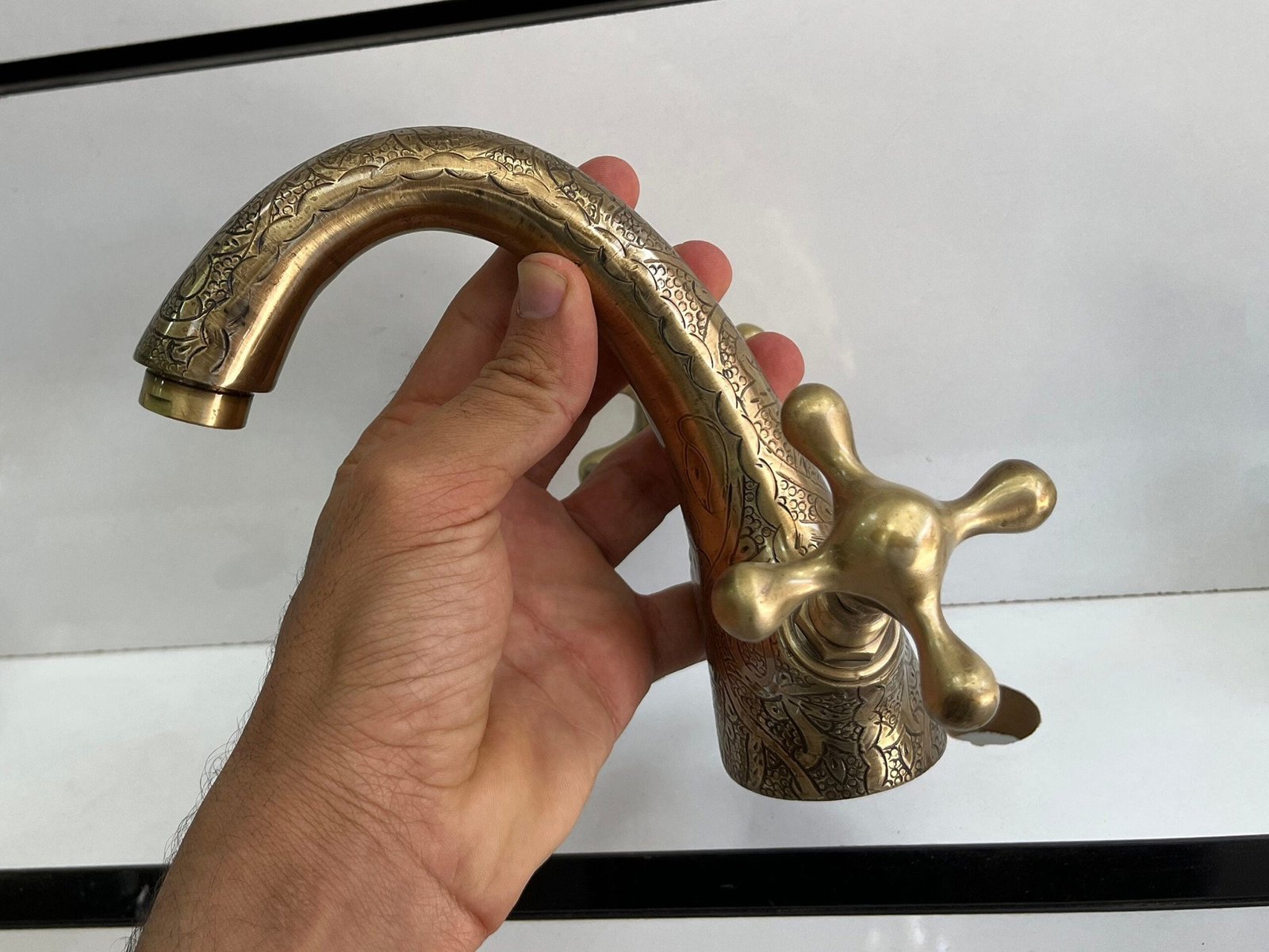 This faucet is 100% handmade, oiled bronze finish, it will add an elegant, charming and antique decoration to your space.