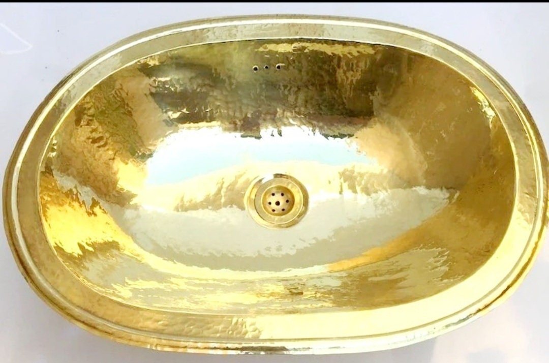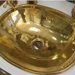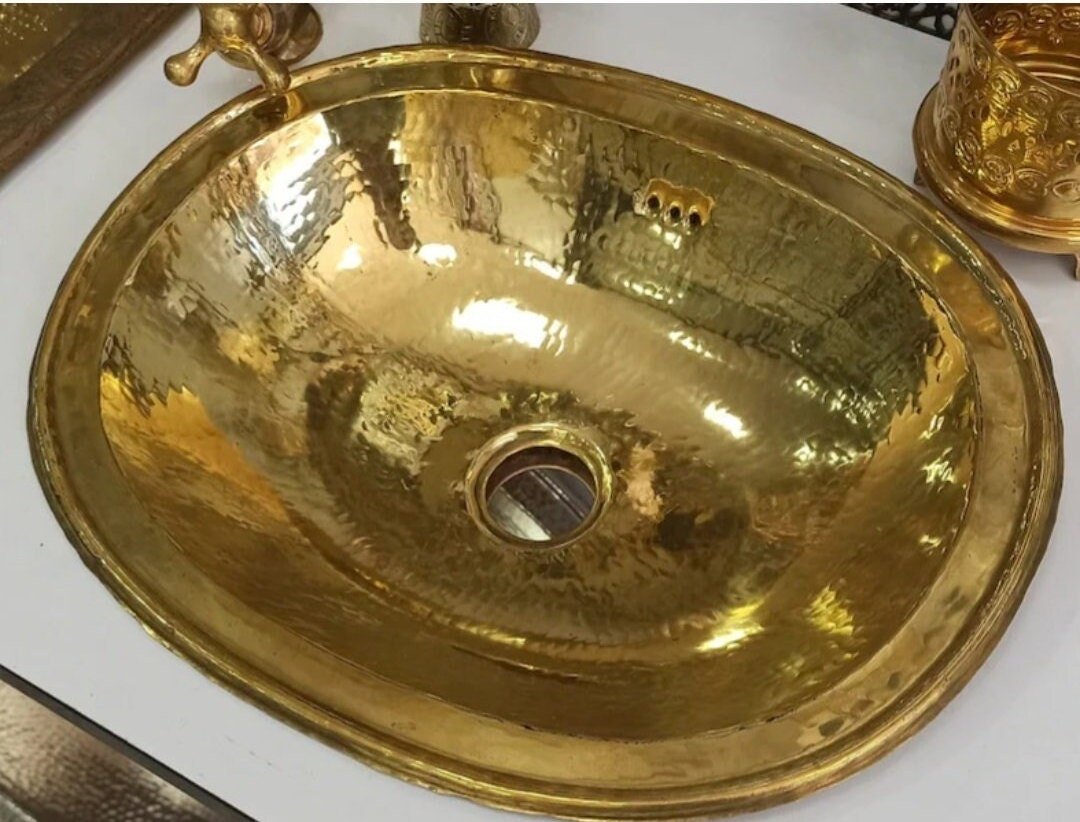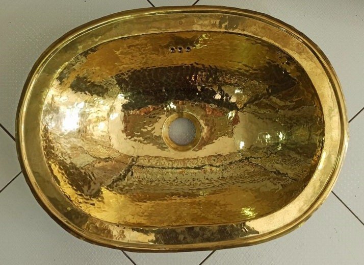 Oval brass sink, vintage Moroccan brass hand hammered round sink wash basin, handcrafted sink with Moroccan design