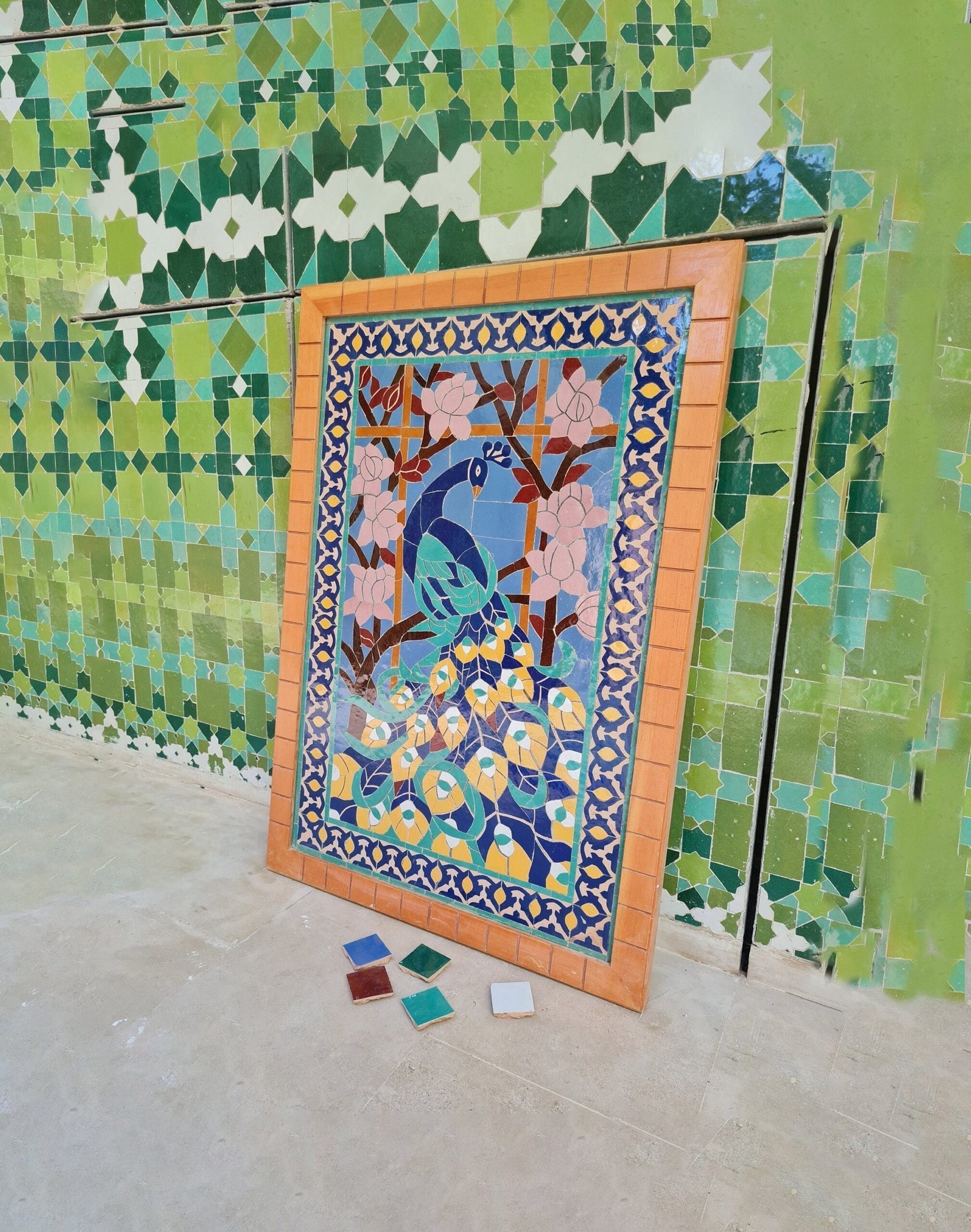 Moving to Zellige, when it bakes for the first time, and the second time with the paint it is given to Nekkach that decides what kind of pattern will be used on it depends on where Zellige will be put. He spreads them flipped in a geometrical pattern based on ancient references such as Karaouiyn, and the king’s palaces…