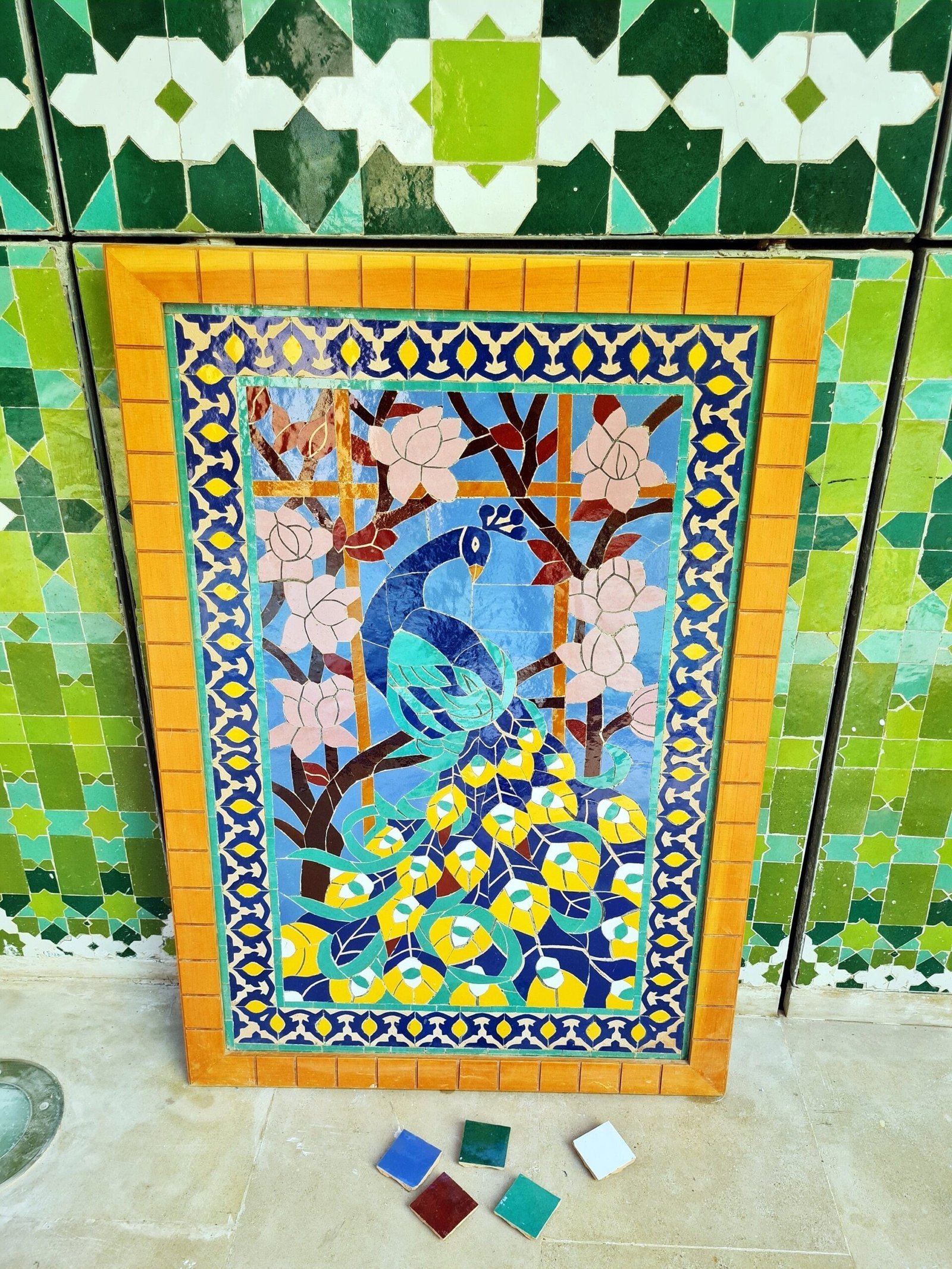 Then we use a material called ” La resin ” or ” cola sima” and we let them dry. After that we flip them to the front to see the design of the Zellige. That is the workmanship of Clay in the City of Fes.