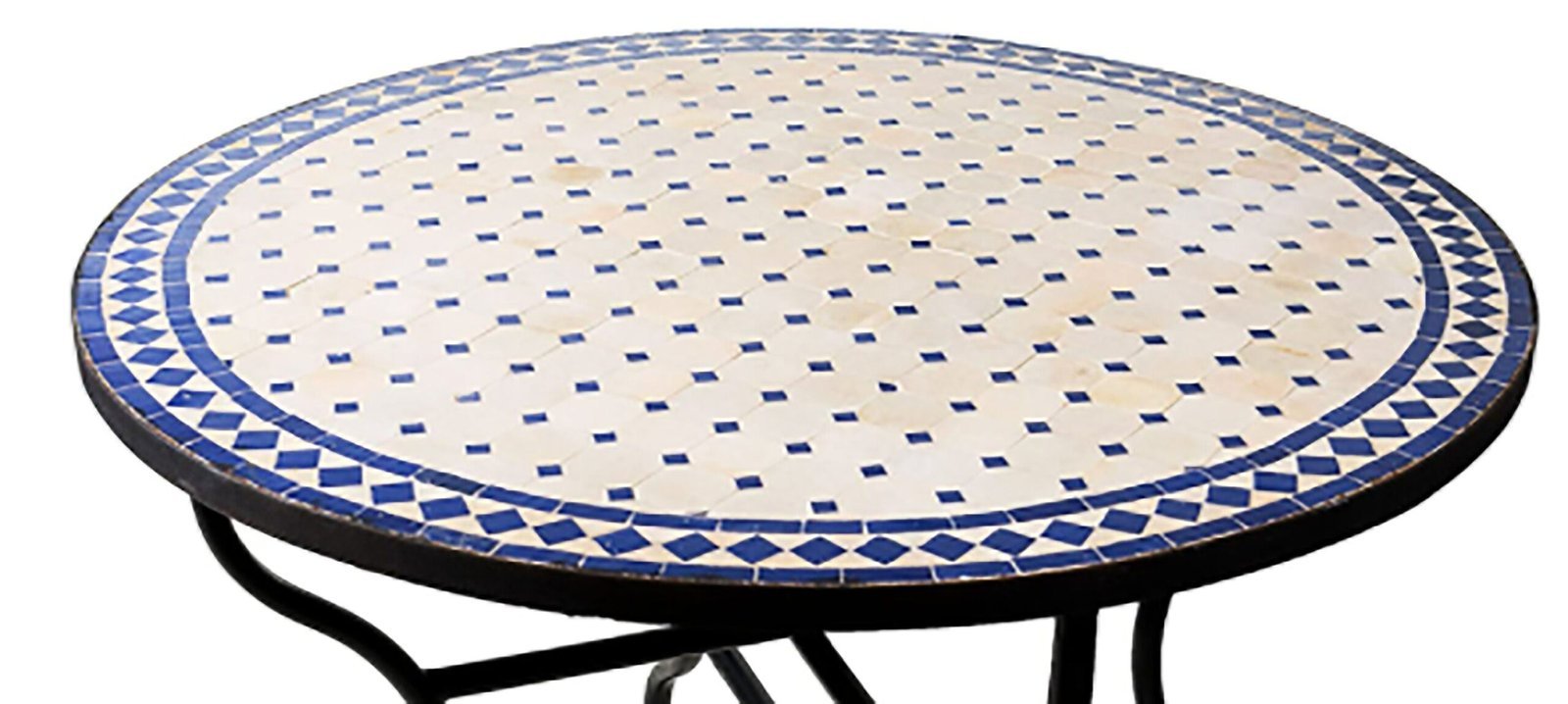 Personalized Round Blue and White Mosaic Tile Dining Room table