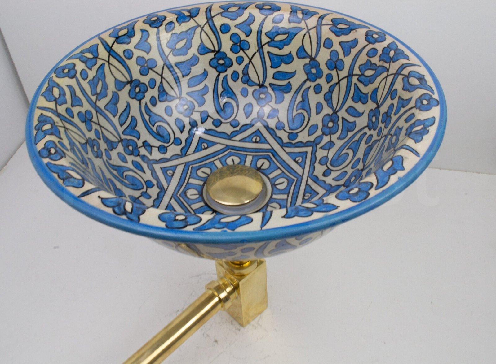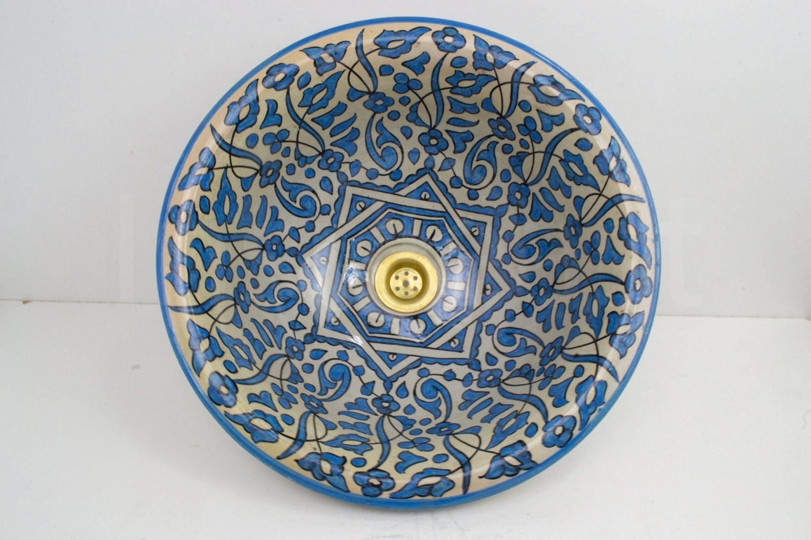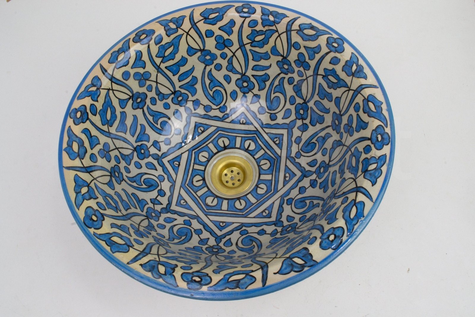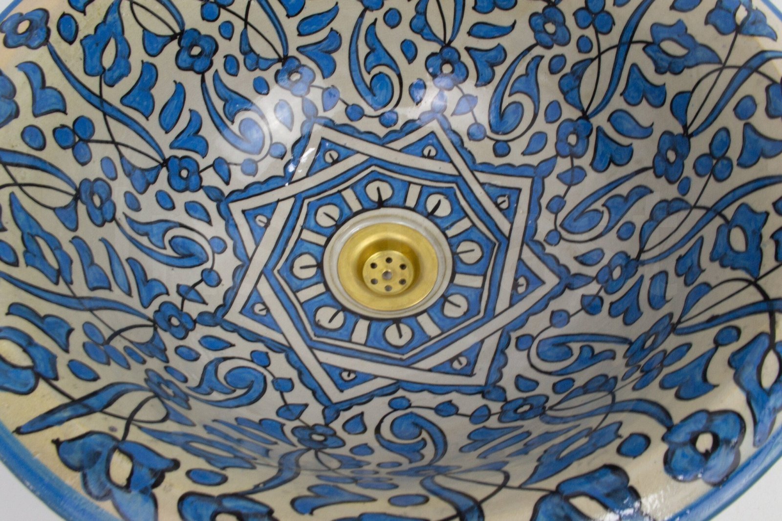 Ceramic handmade table Top Vessel Sink Handmade Hand Painted by an Artisan Potter in the city of Fez. For people who are looking for quality and dazzling decorations.