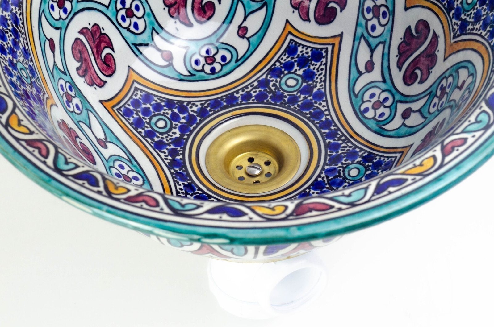 Ceramic handmade table Top Vessel Sink Handmade Hand Painted by an Artisan Potter in the city of Fez. For people who are looking for quality and dazzling decorations.