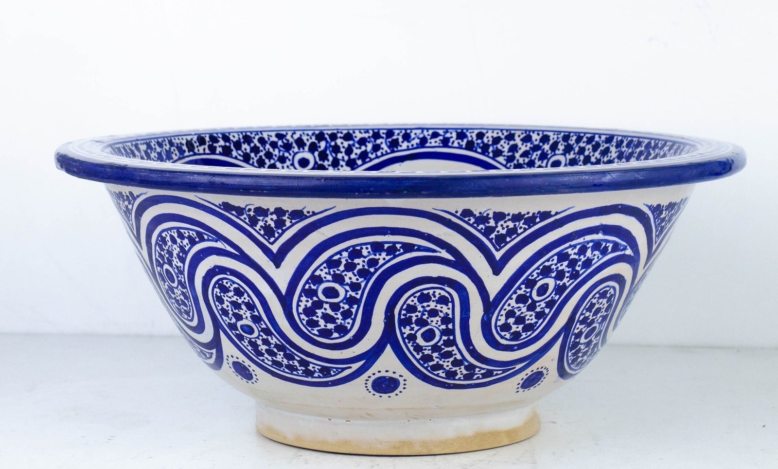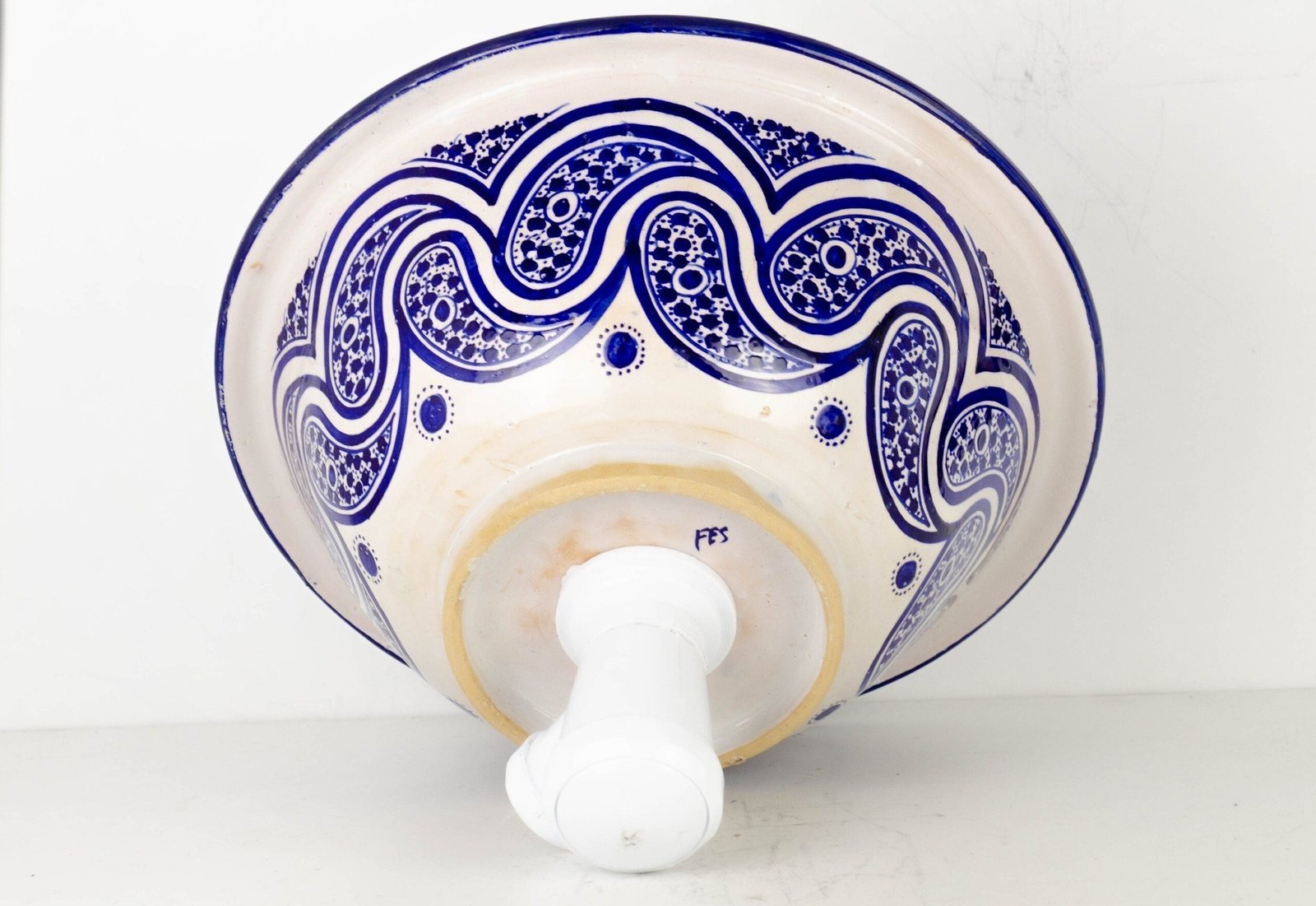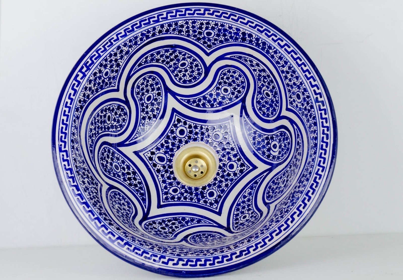 Pottery Handmade Vessel Sink Painted Moroccan Washbasin for Bathroom and guest bathroom
