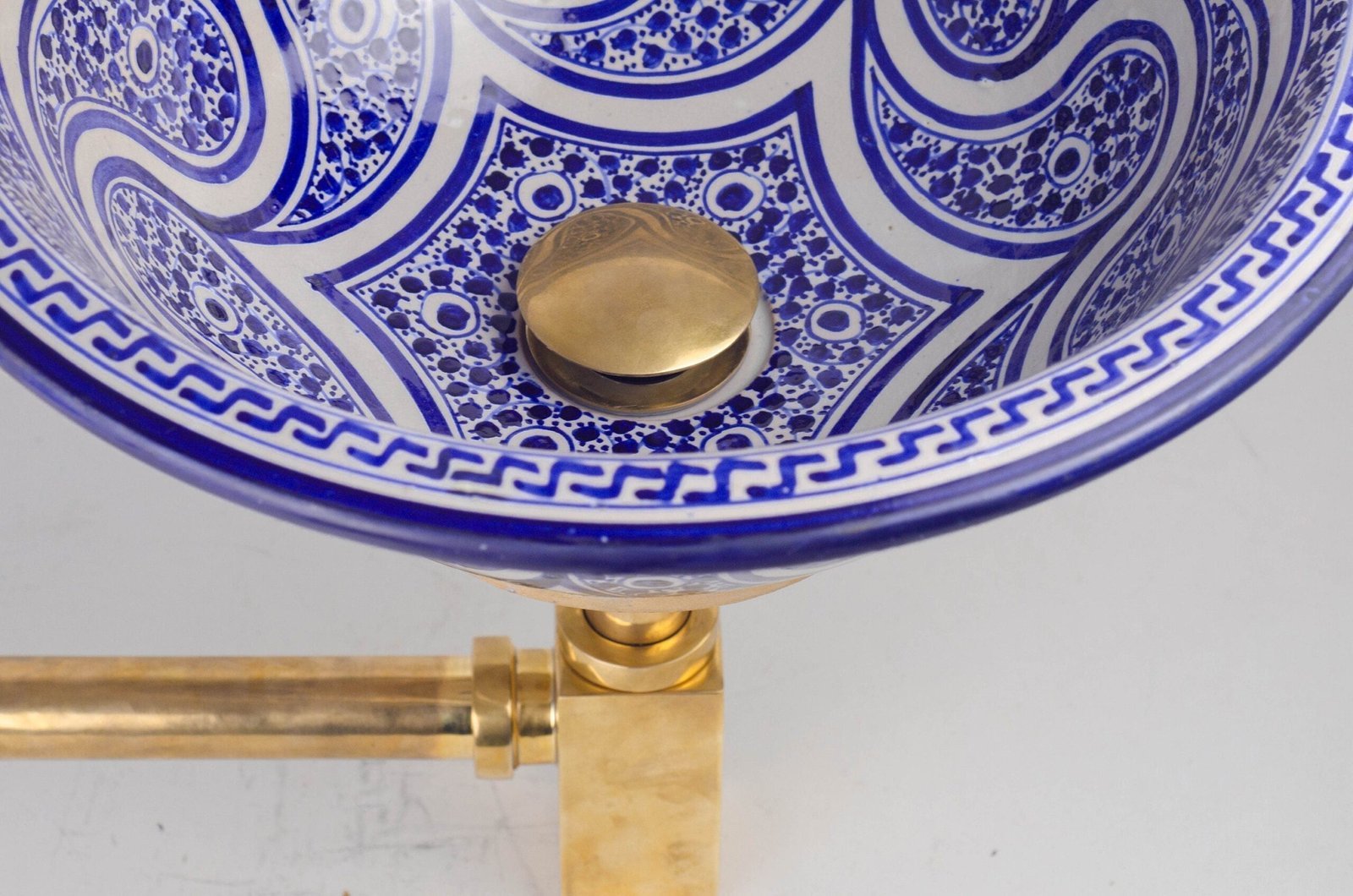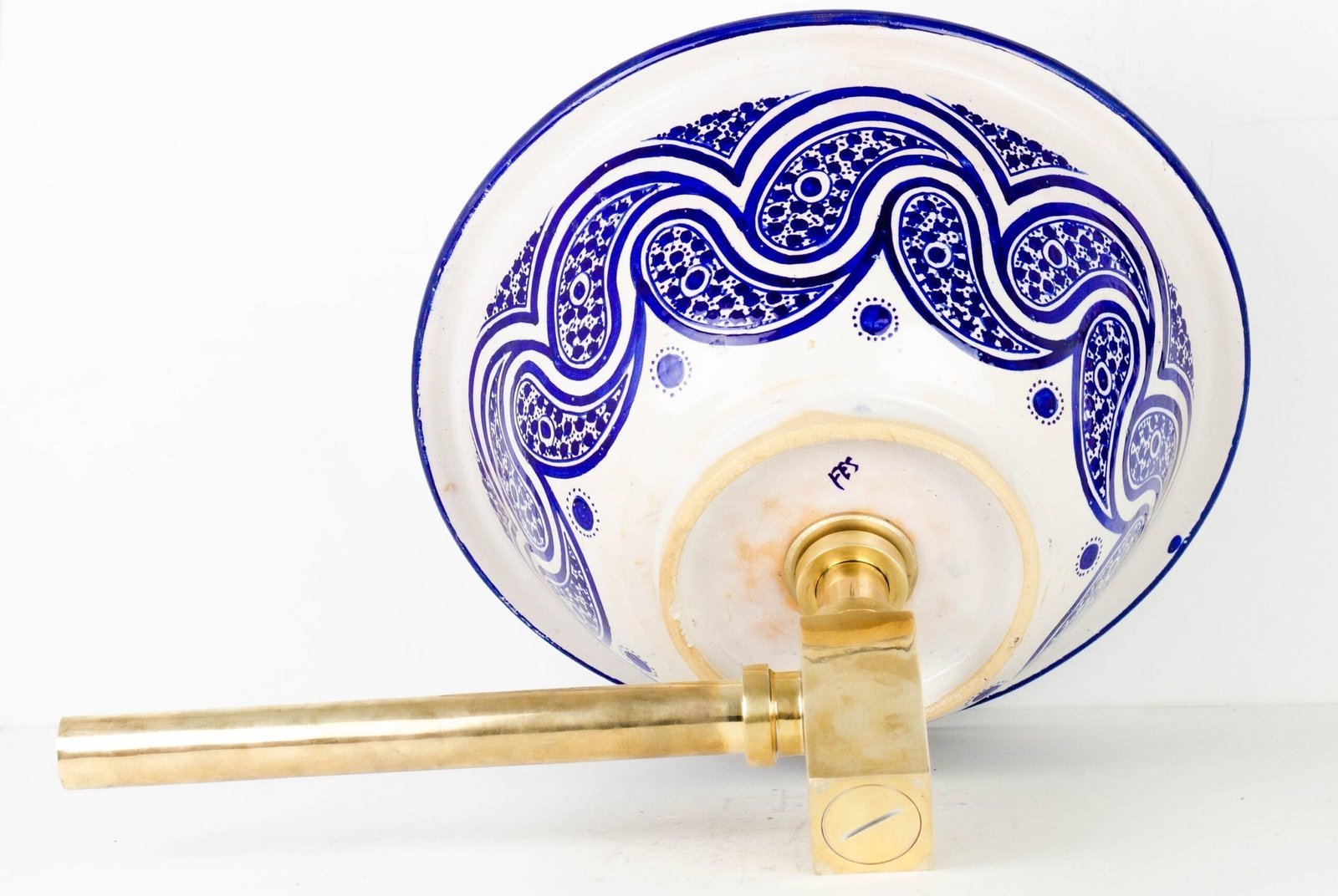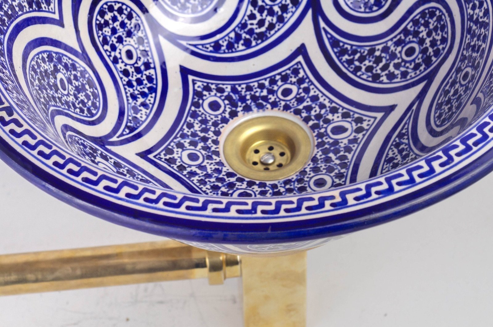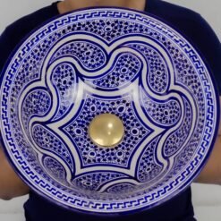 Pottery Handmade Vessel Sink Painted Moroccan Washbasin for Bathroom and guest bathroom
