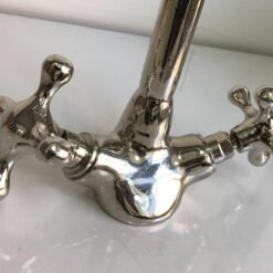 Bathroom Sink Faucet , Unlacquered Solid Brass Kitchen Faucet, Gooseneck Faucet, With Vintage Styled Flat Cross Handles Hot Cold Water Tap