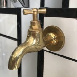 Small Wall Faucet Spigot Water Tap,Antique Unlacquered Solid Brass Tap,Handcrafted Garden single handle cold water faucet , outdoor faucet