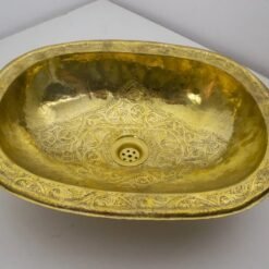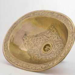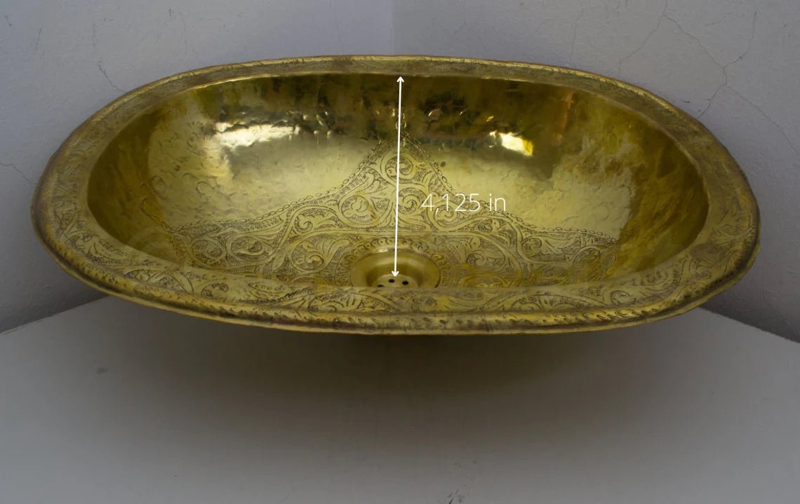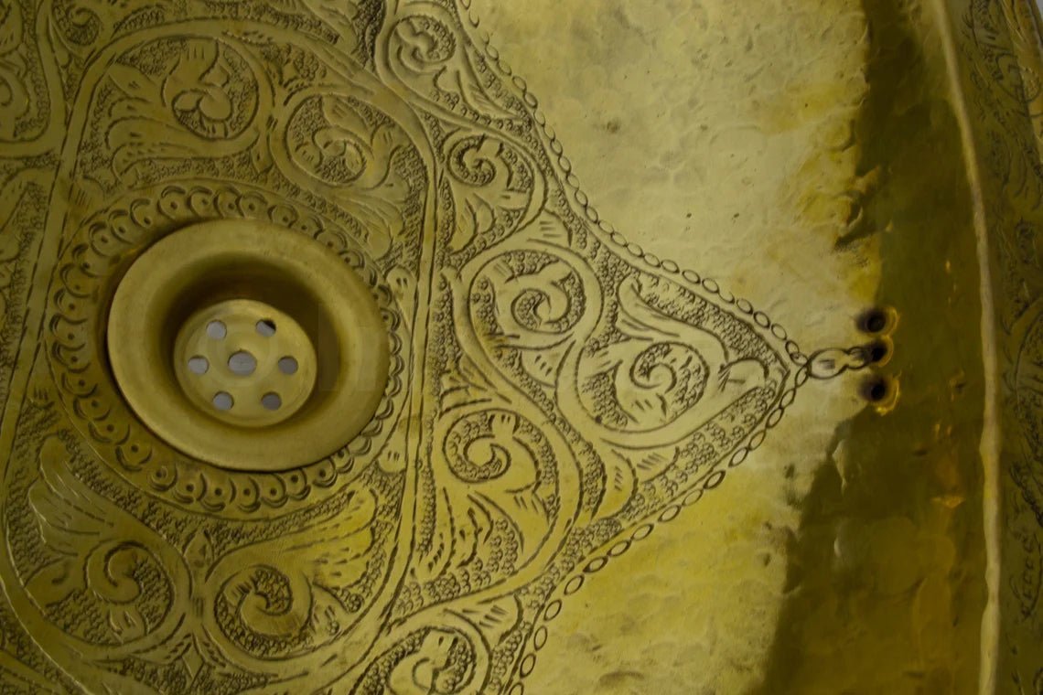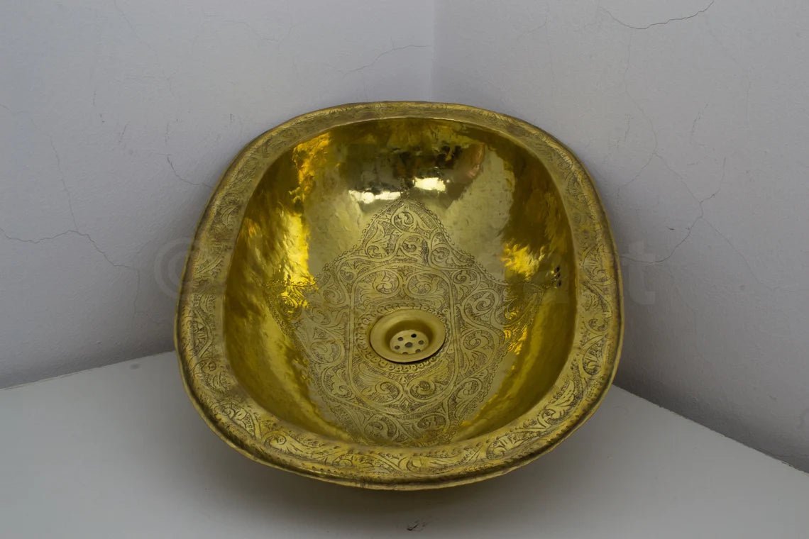 -Handcrafted moroccan pattern etched solid brass drop in bathroom sink, made of a 16th pure brass sheet with its matching drain. Made in Fes by passionate craftsmen and excellent workmanship, designed to last.