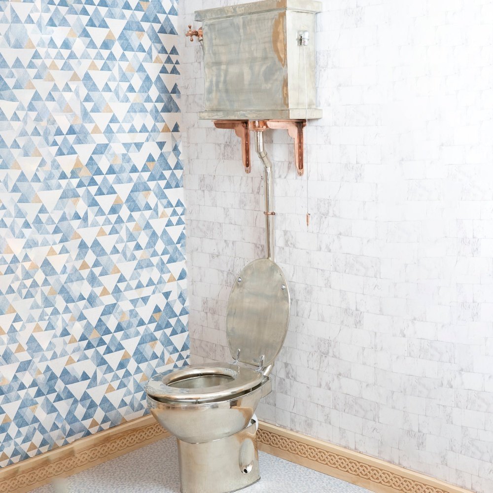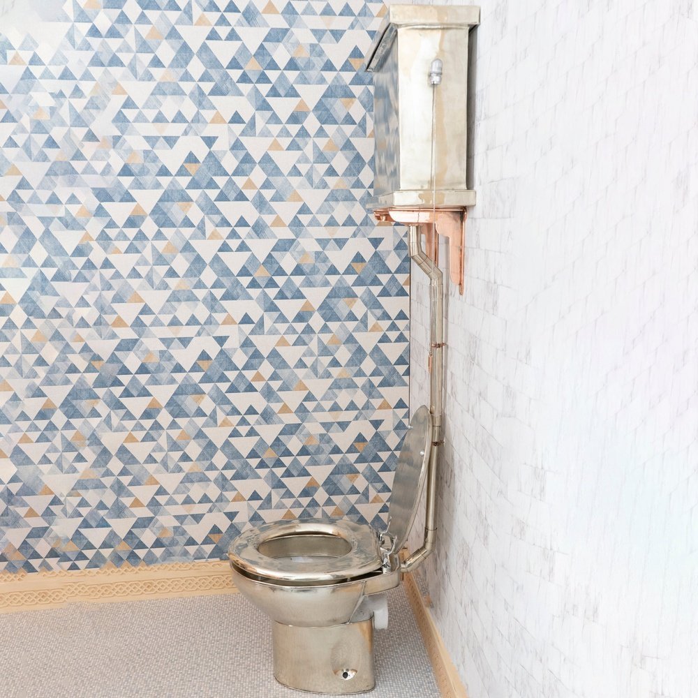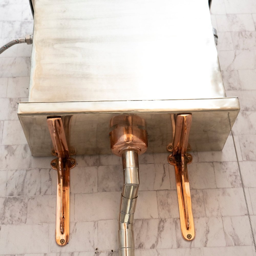 The Victorian German Silver high level toilet features a hand crafted wall mounted high tank and classic pull and chain. The The Victorian high toilet used with throne seat all covered with German silver material. There are a variety of seat finishes available and the metalwork is available in Brass, Nickel or Copper