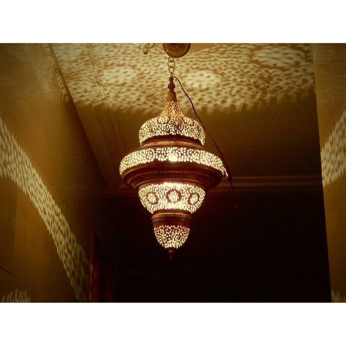 Beautiful Decoration Style, Moroccan Hanging Lamp 100% Handcrafted From Fez beautiful design made from Copper with a Beautiful reflection of the light Will Perfectly go with your interior and gives a more warm and selected ambiance