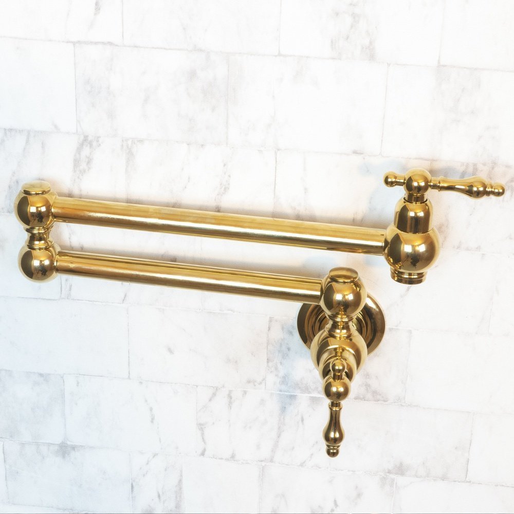 Give your kitchen a modern edge with the pot filler Kitchen Faucet. Featuring lever handles, this piece’s elegant shape extends over your counter for a streamlined look and feel. Made of brass, it boasts a durable finish that is available in a variety of colors to complement your decor. it includes a water-efficient and eco-friendly aerator.