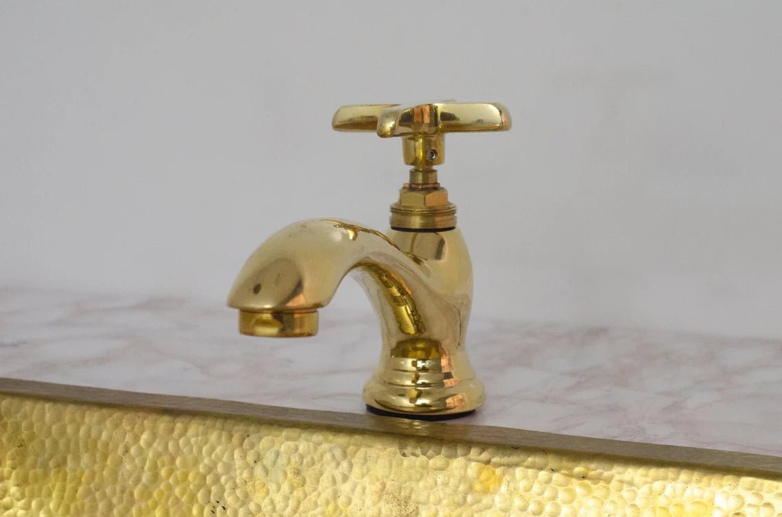 Unlacquered Brass Faucet develops patina to showcase an old warm and inviting elegance.