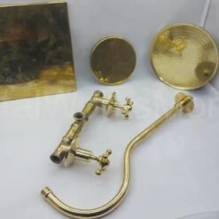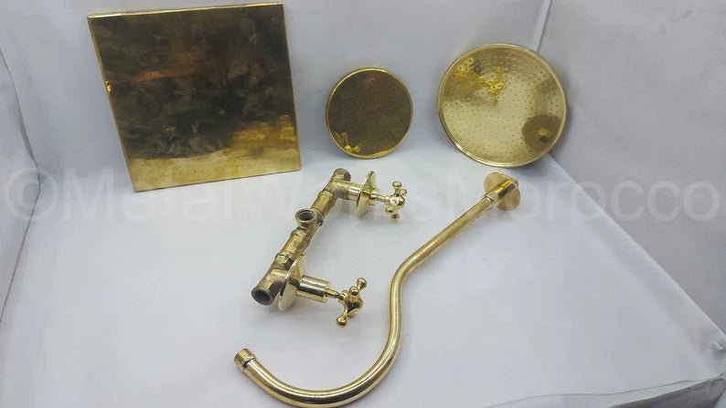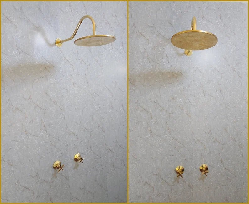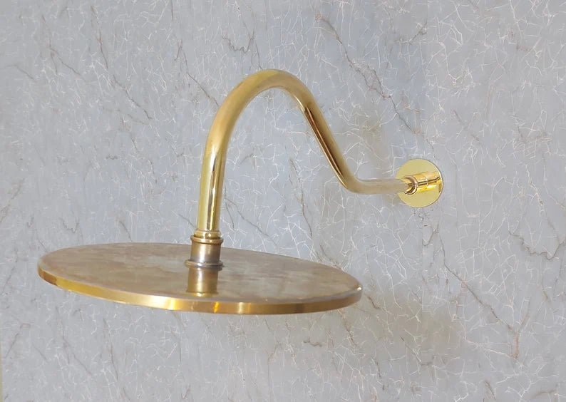 Unlacquered brass wall mounted shower faucet set with arc shower arm- handmade shower system