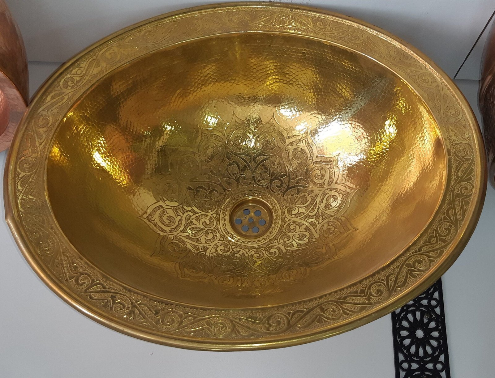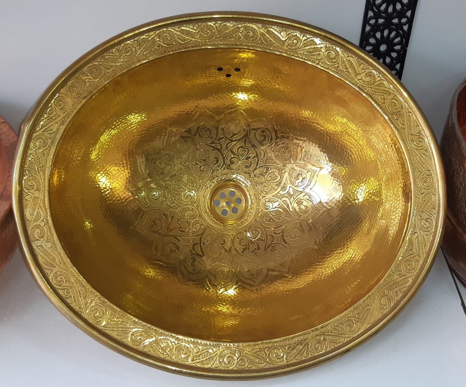 Sink Brass Or Maroccan,Handmade round / oval gold tone hammered brass Moroccan sink, Moroccan bathroom decor, vintage style brass sink.
