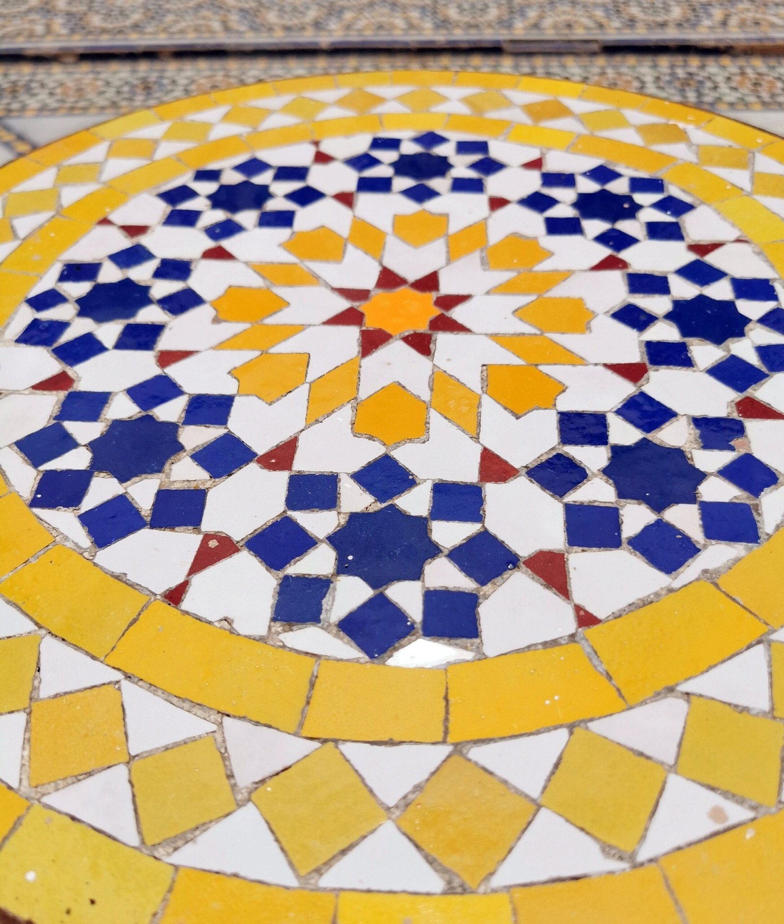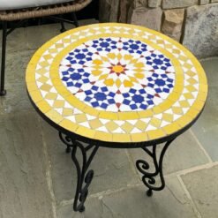 Yellow & Blue Mosaic Table – handmade Zellige Coffee Table – outdoor Solid Waterproof Mosaic Table